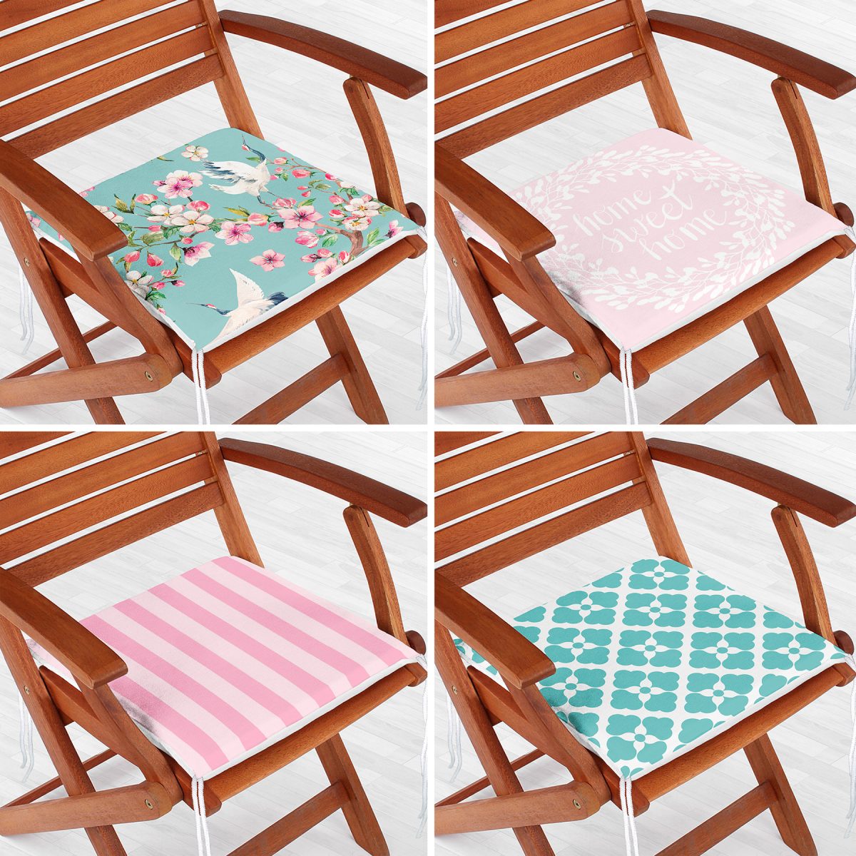 4’lü Pembe ve Mint Yeşili Konseptli Dekoratif Fermuarlı Sandalye Minderi Seti