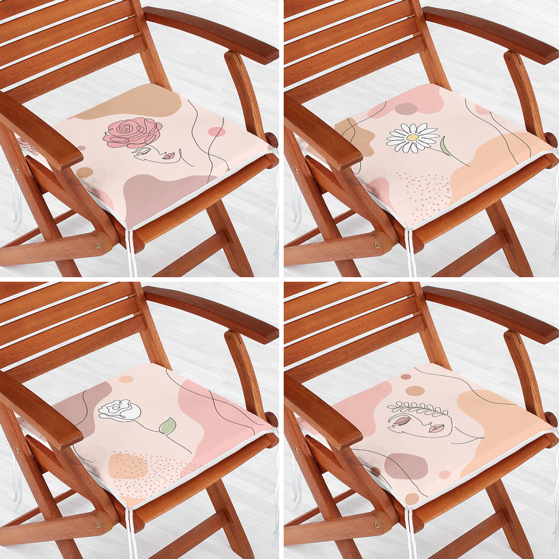 4’lü Pembe Zemin Üzerinde Çiçek Motifli Dekoratif Fermuarlı Sandalye Minderi Seti