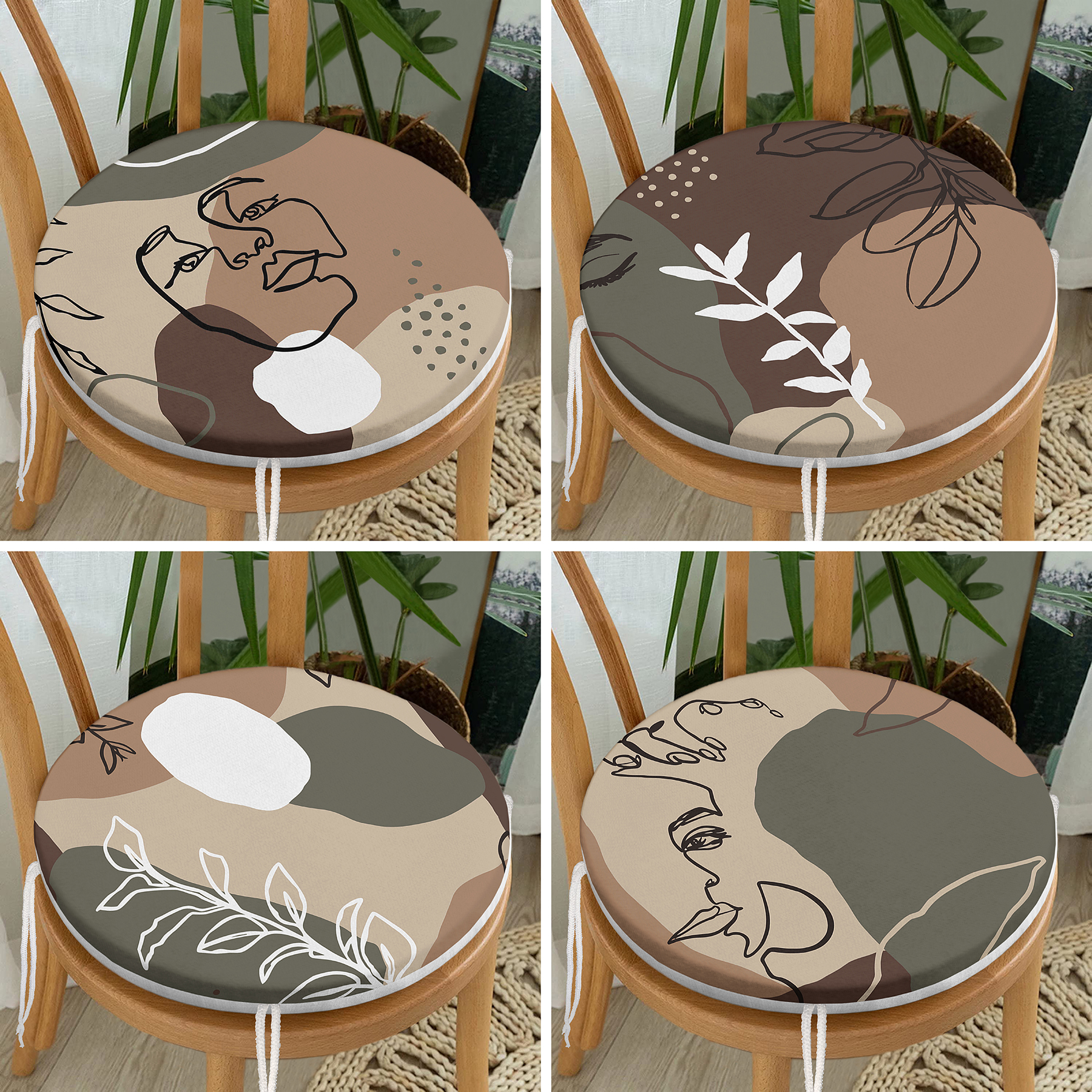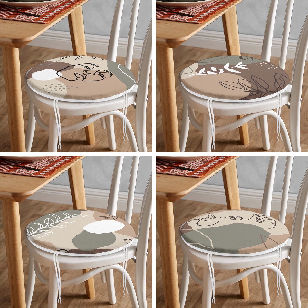 4'lü Portre Tasarımlı Dekoratif Yuvarlak Fermuarlı Sandalye Minderi Seti Realhomes