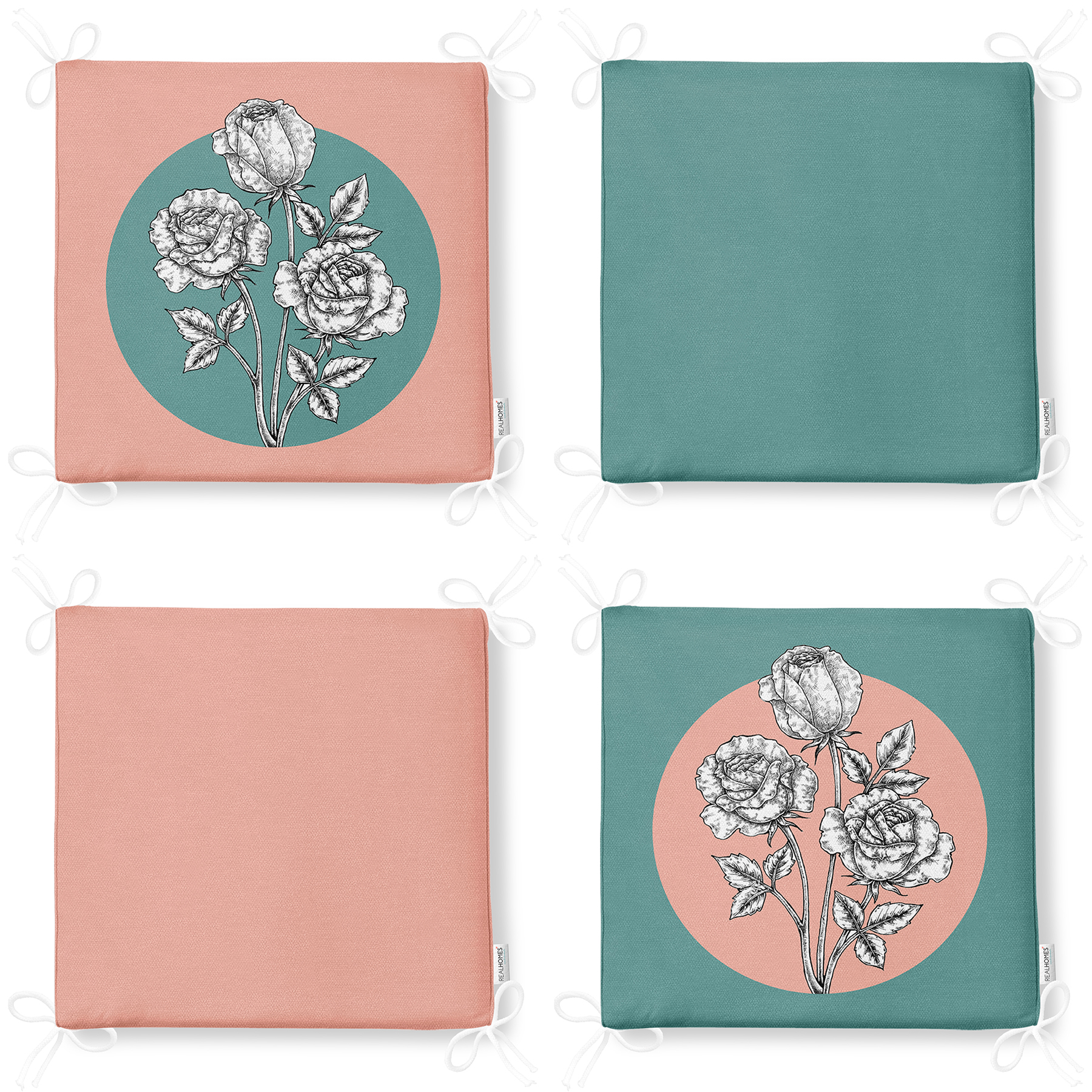 4'lü Renkli Karakalem Çiçek Motifli Fermuarlı Sandalye Minderi Seti Realhomes