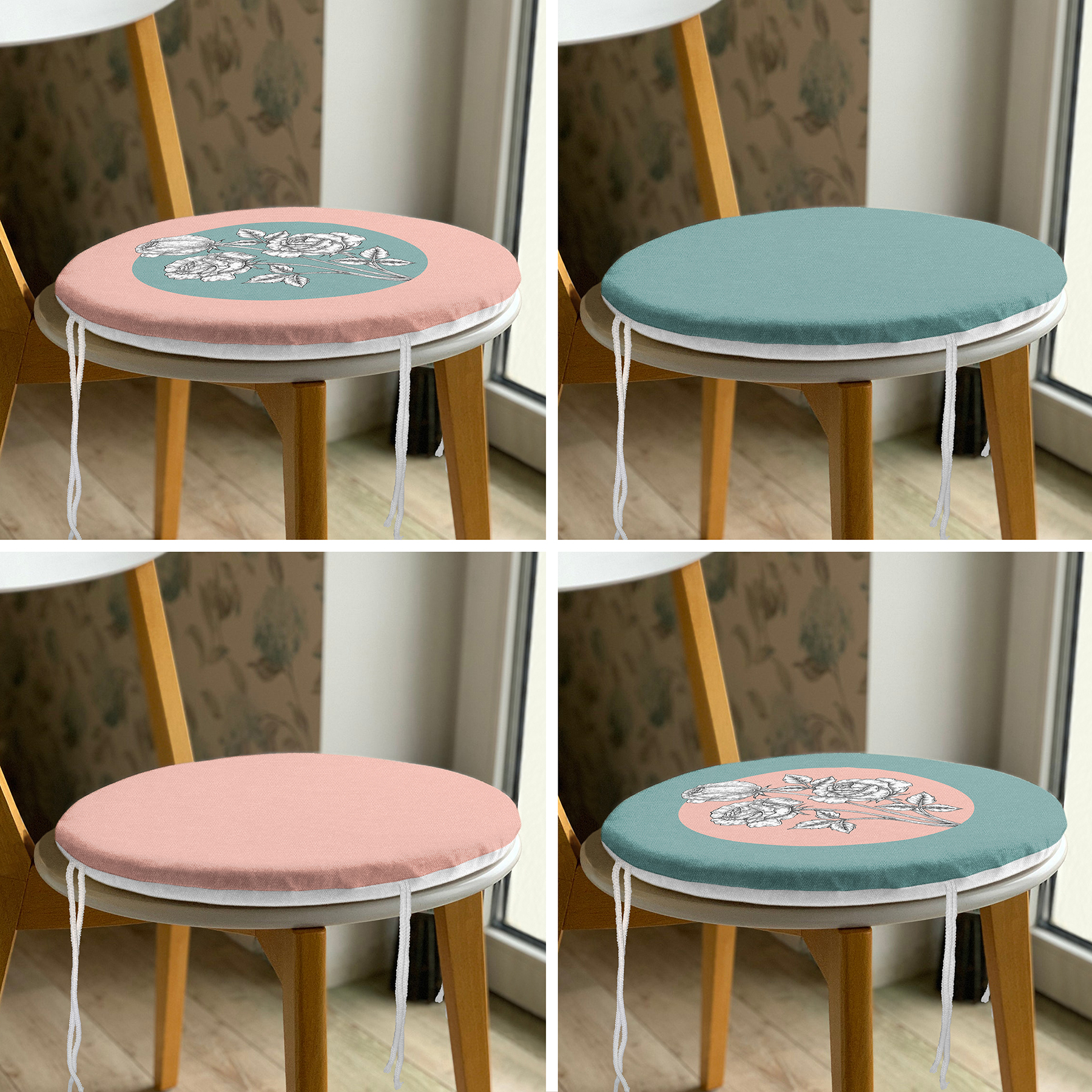 4'lü Renkli Karakalem Çiçek Motifli Yuvarlak Fermuarlı Sandalye Minderi Seti Realhomes