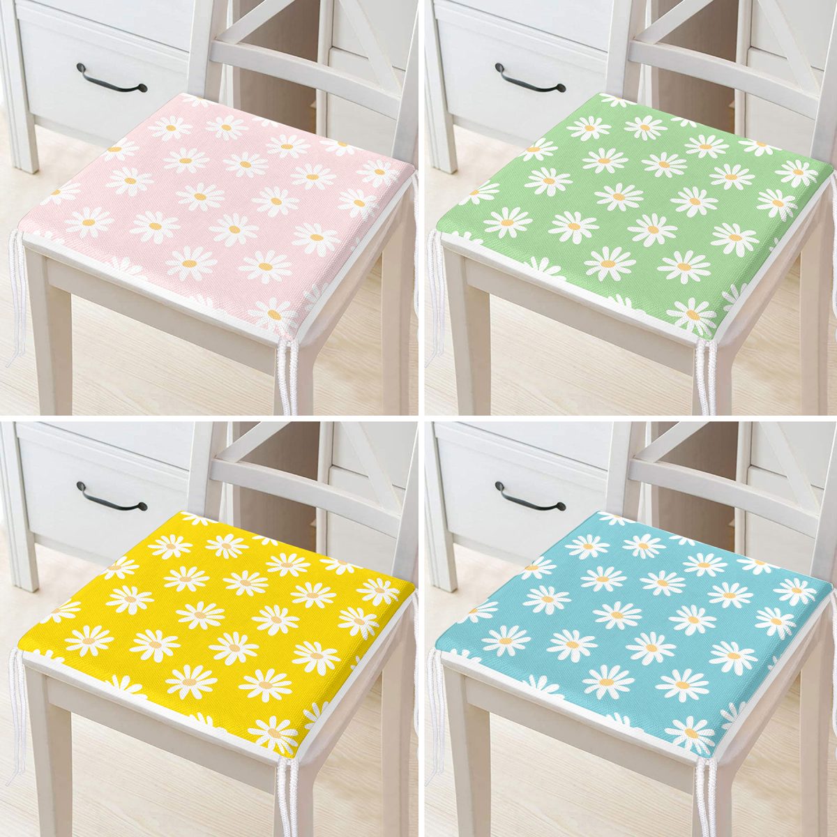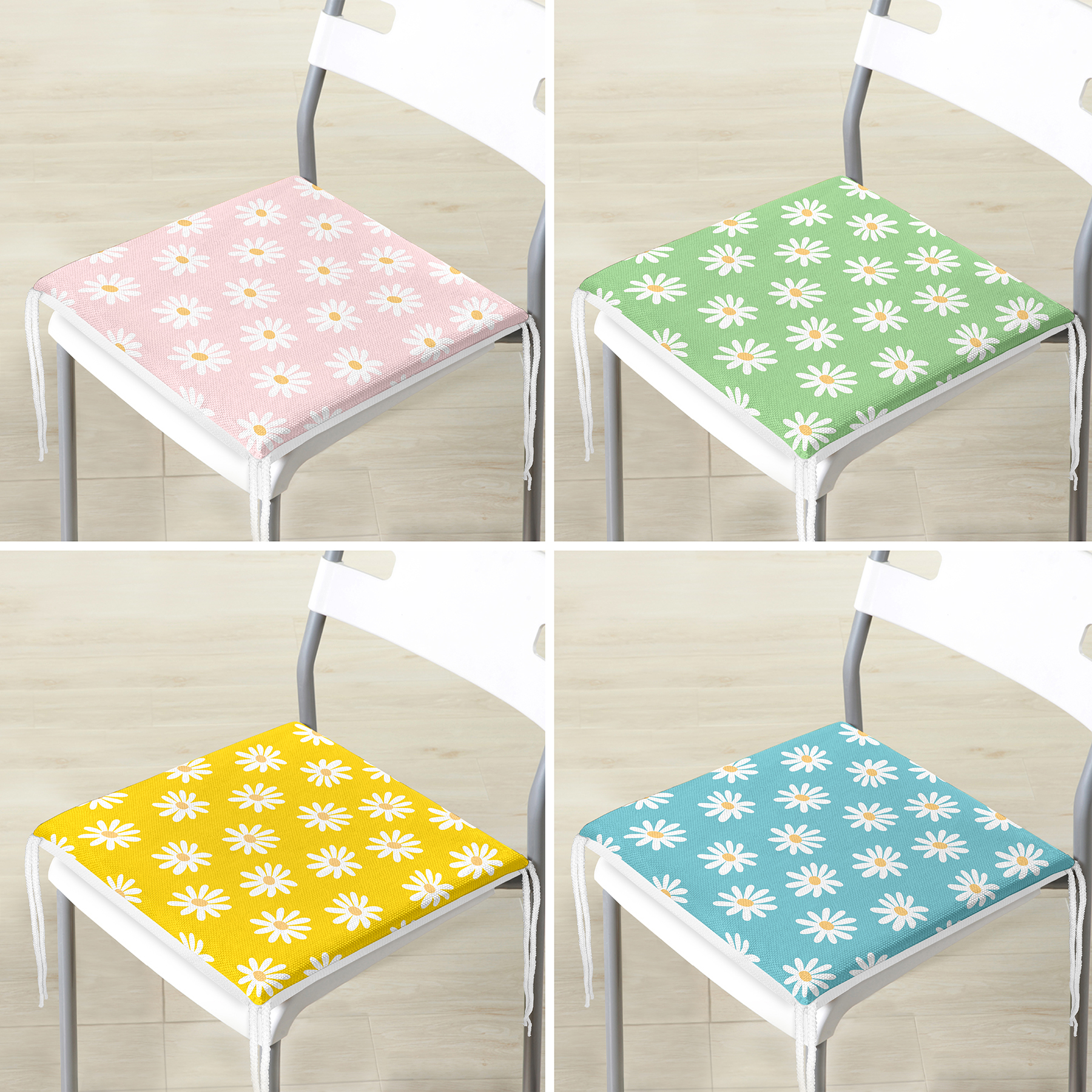 4’lü Renkli Zemin Papatya Tasarımlı Dijital Baskılı Modern Fermuarlı Sandalye Minderi Seti