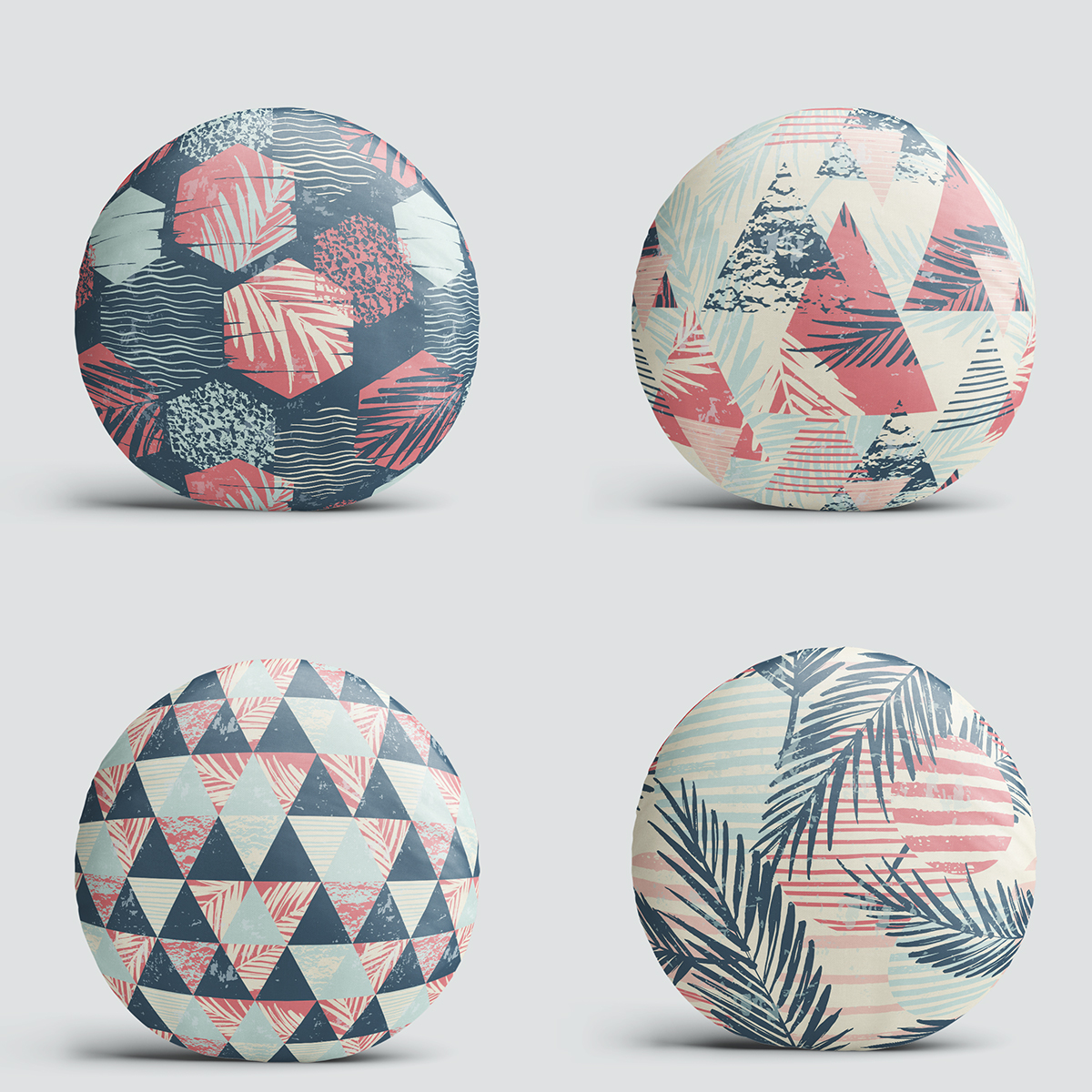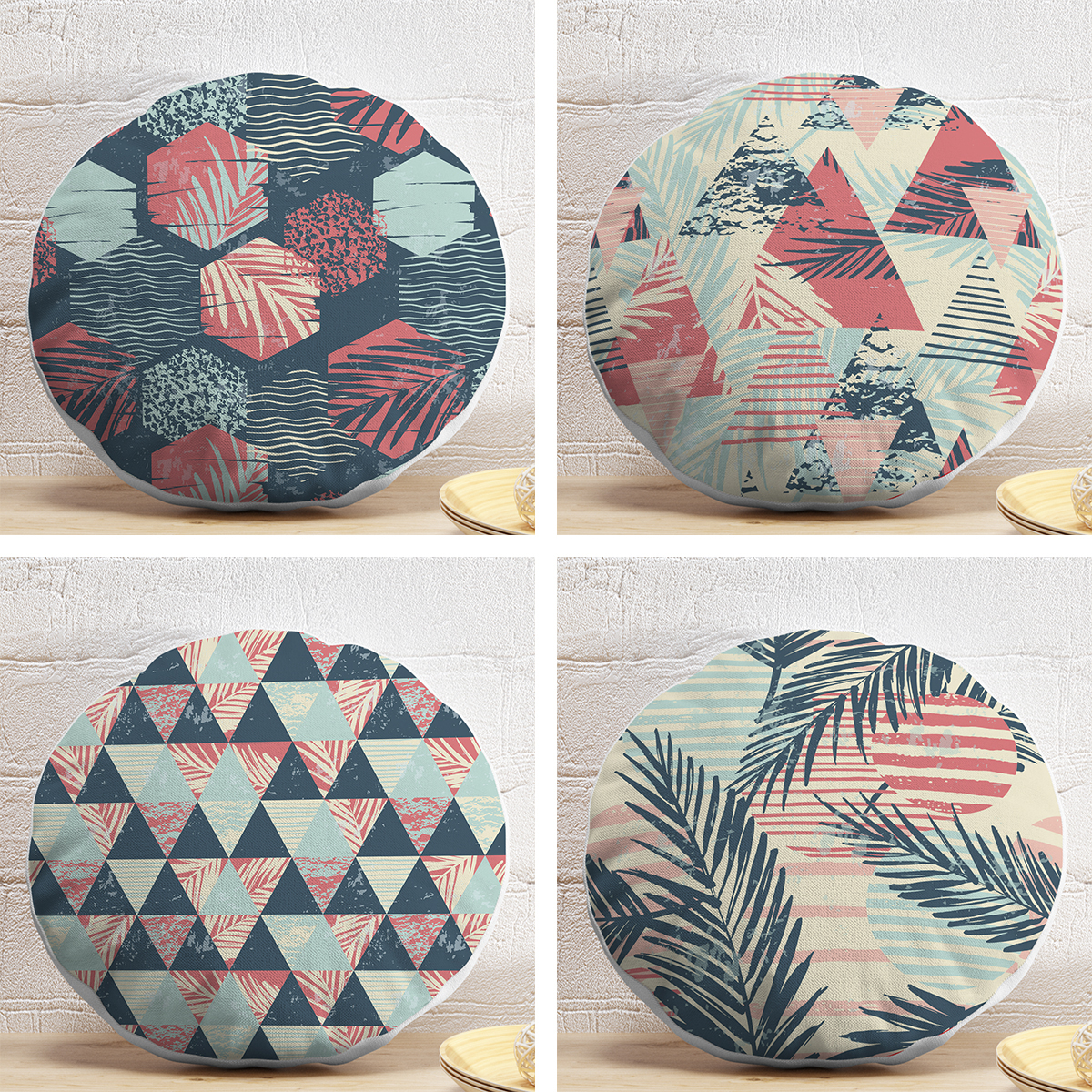 4'lü Renkli Zemin Üzerinde Geometrik Çizimli Modern Yuvarlak Yastık Kırlent Kılıf Seti Realhomes