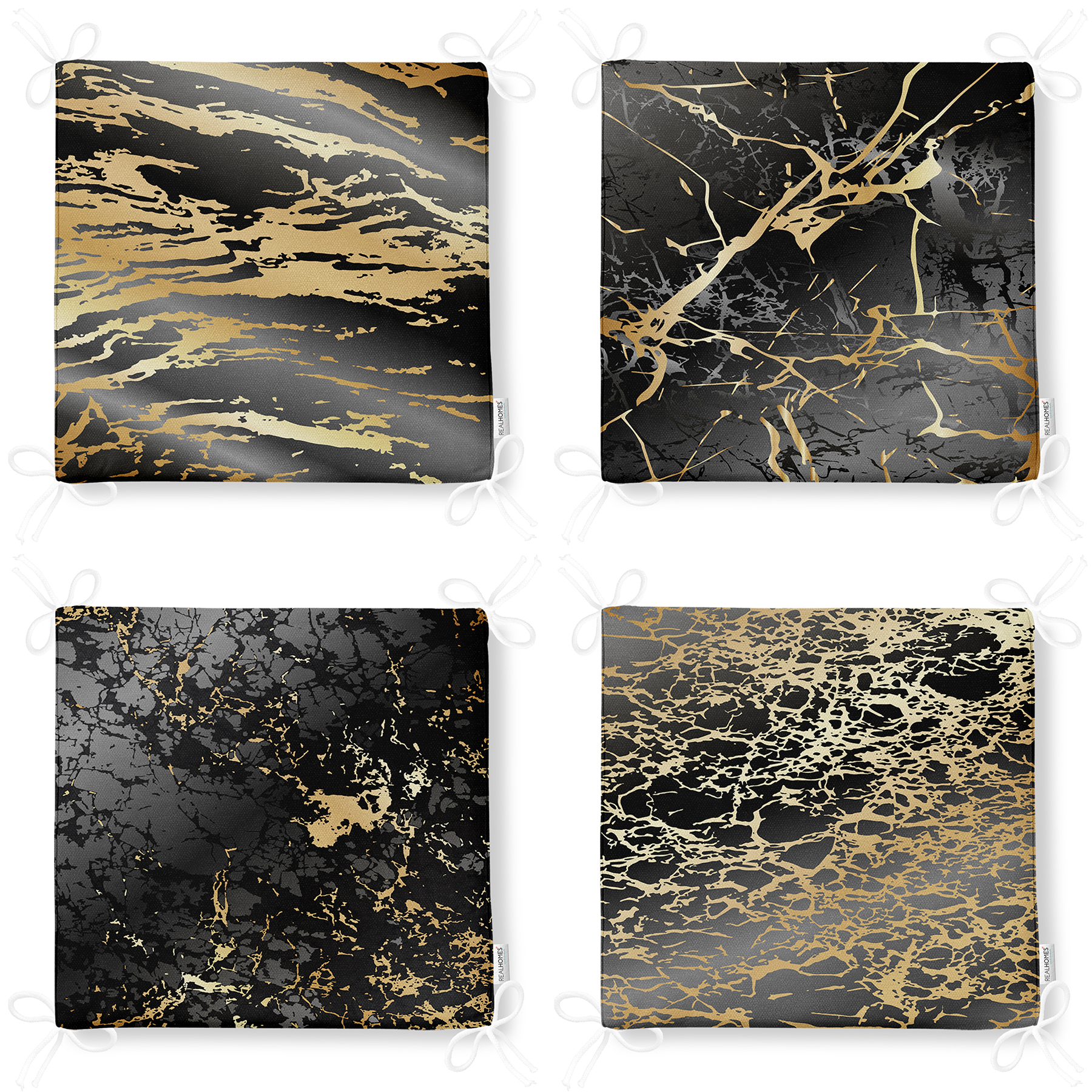 4'lü Renkli Zemin Üzerinde Gold Detaylı Mermer Desenli Modern Fermuarlı Sandalye Minderi Seti Realhomes