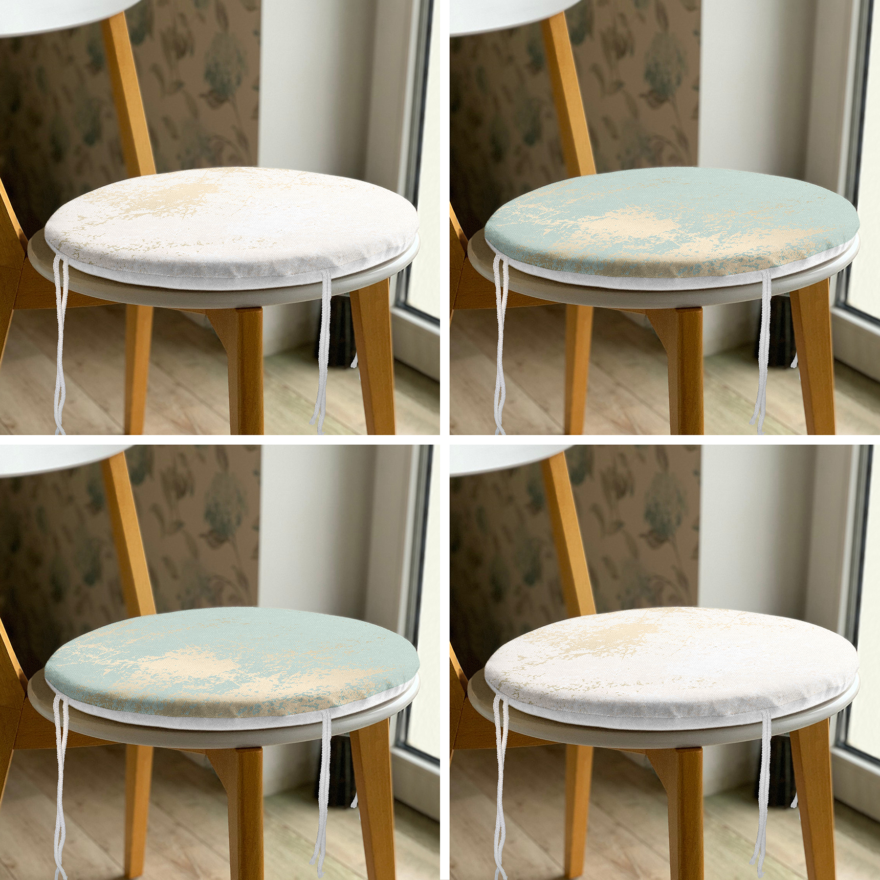 4’lü Renkli Zemin Üzerinde Gold Detaylı Mermer Desenli Modern Yuvarlak Fermuarlı Sandalye Minderi Seti