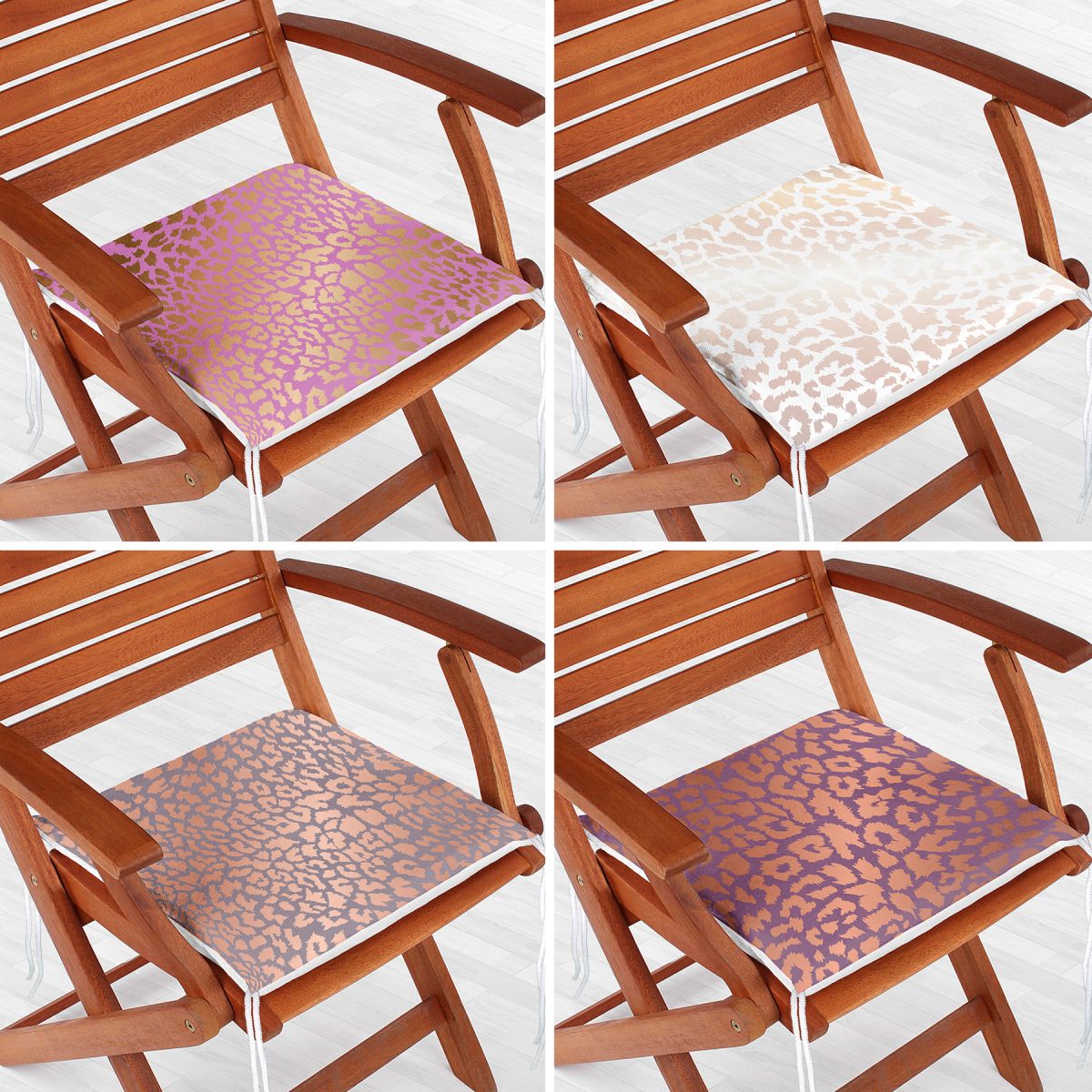 4’lü Renkli Zemin Üzerinde Gold Detaylı Modern Fermuarlı Sandalye Minderi Seti