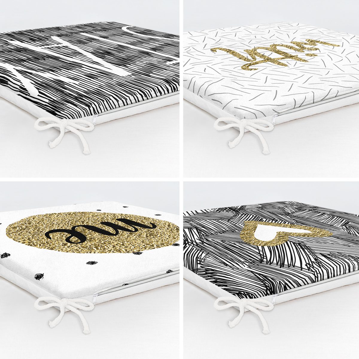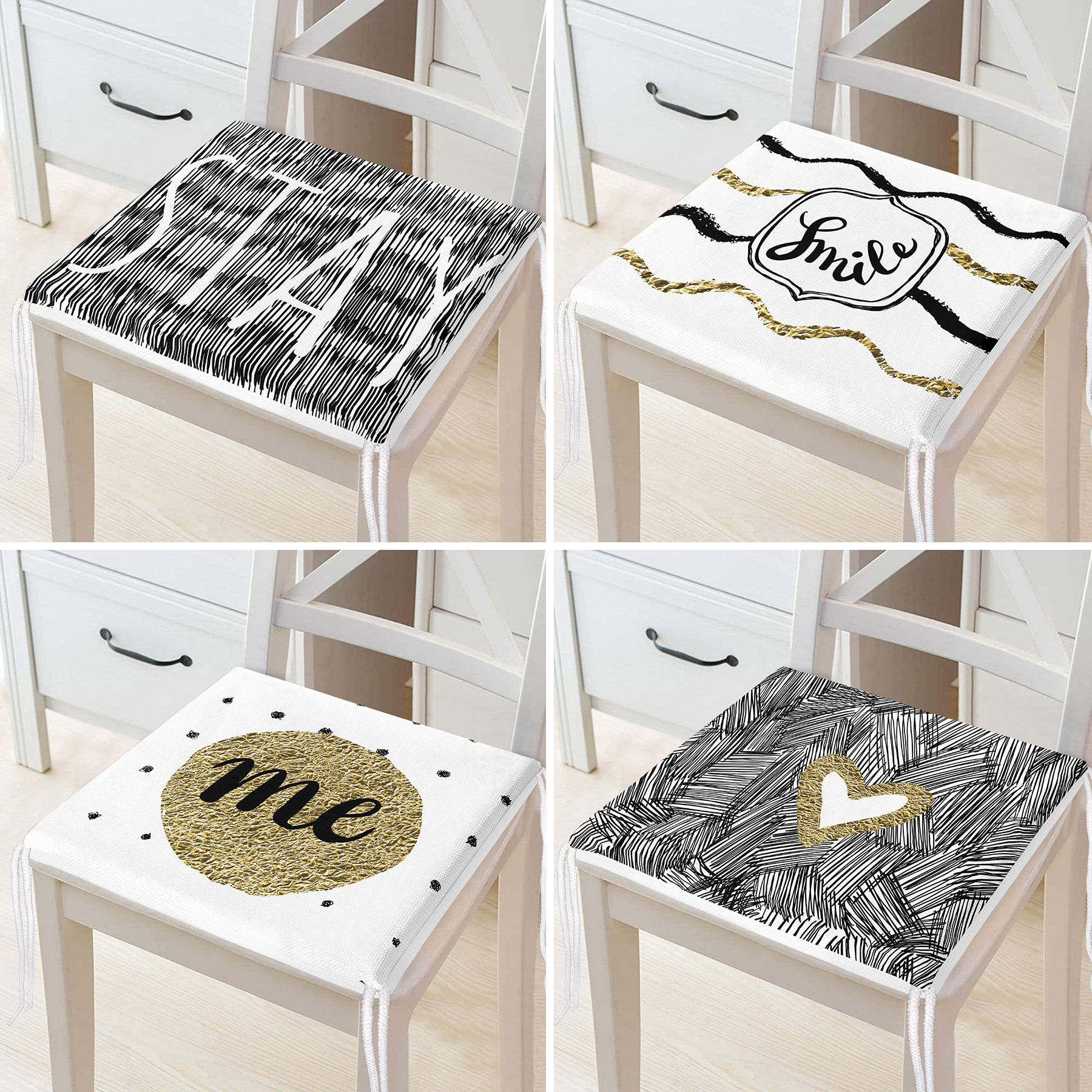 4’lü Renkli Zemin Üzerinde Gold Detaylı Yazılı Modern Fermuarlı Sandalye Minderi Seti