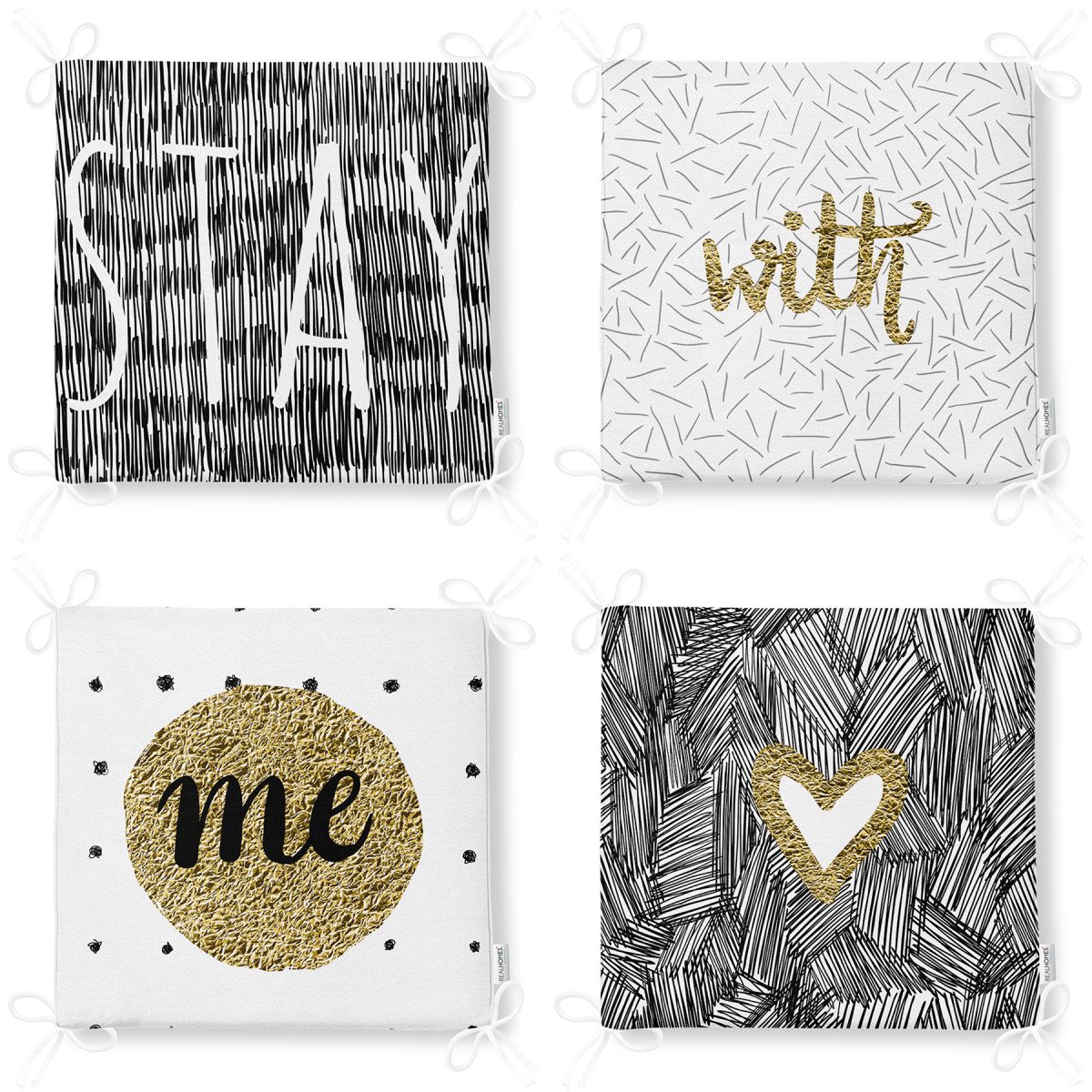 4'lü Renkli Zemin Üzerinde Gold Detaylı Yazılı Modern Fermuarlı Sandalye Minderi Seti Realhomes