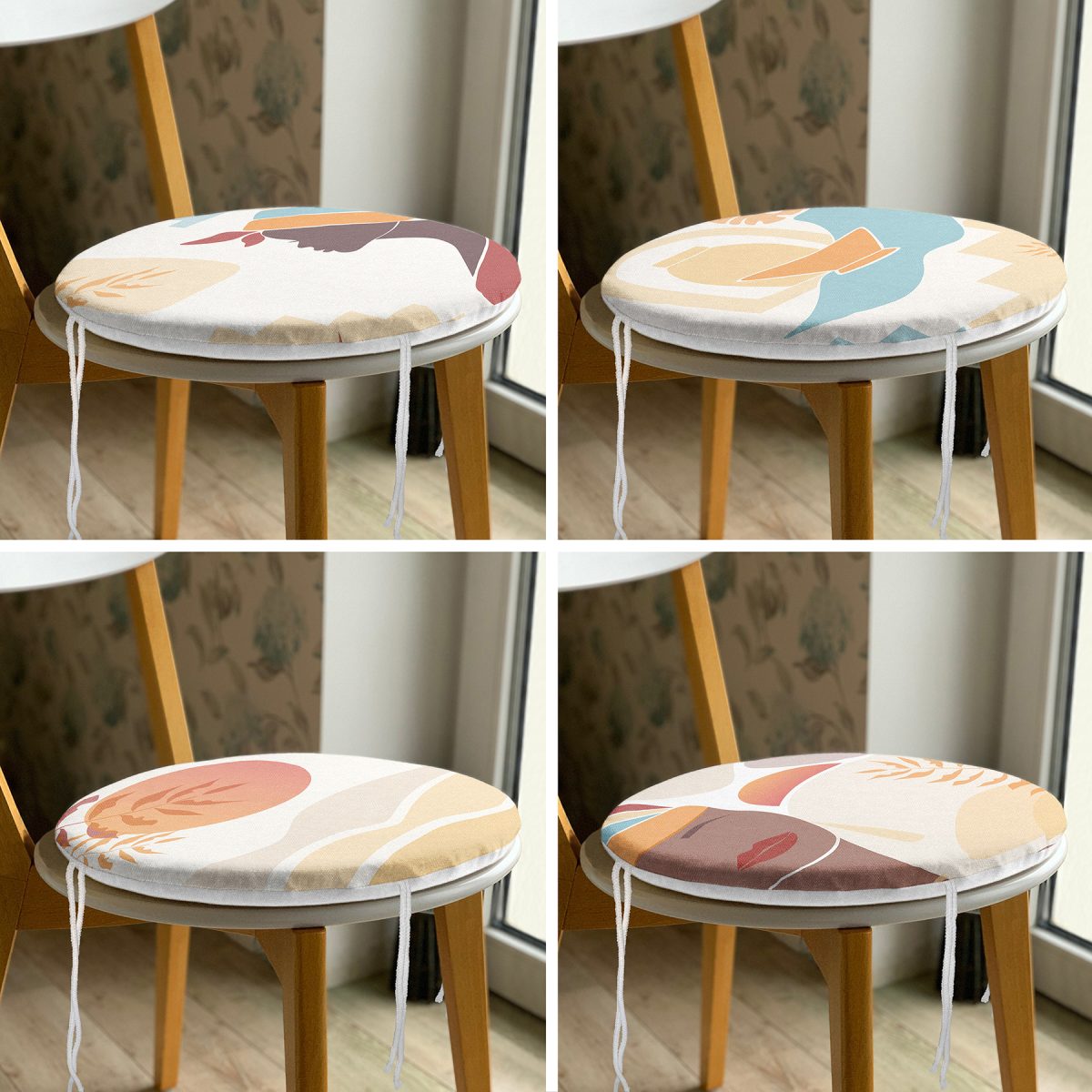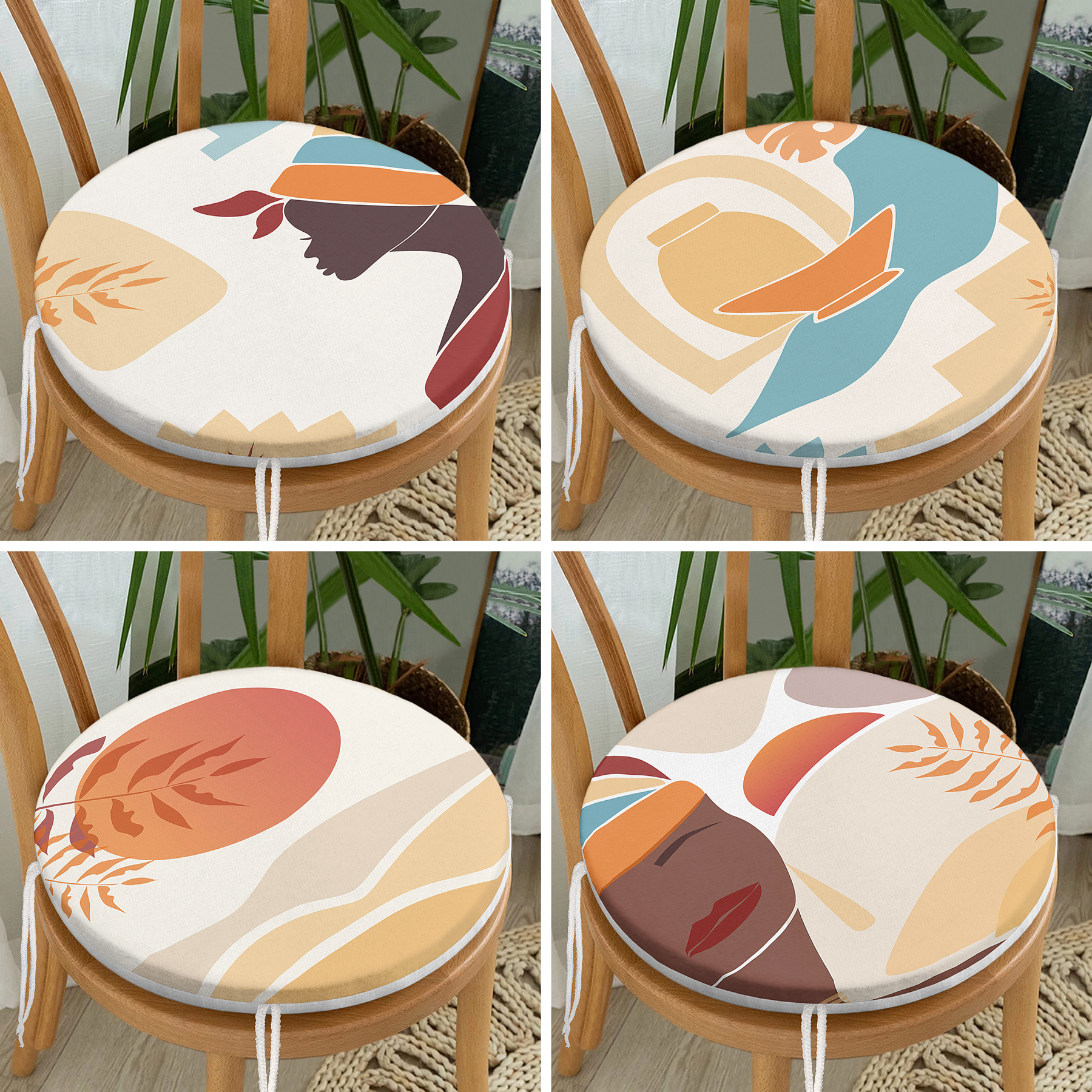 4’lü Renkli Zemin Üzerinde Onedraw Çizimli Afrika Kadın Desenli Modern Yuvarlak Fermuarlı Sandalye Minderi Seti