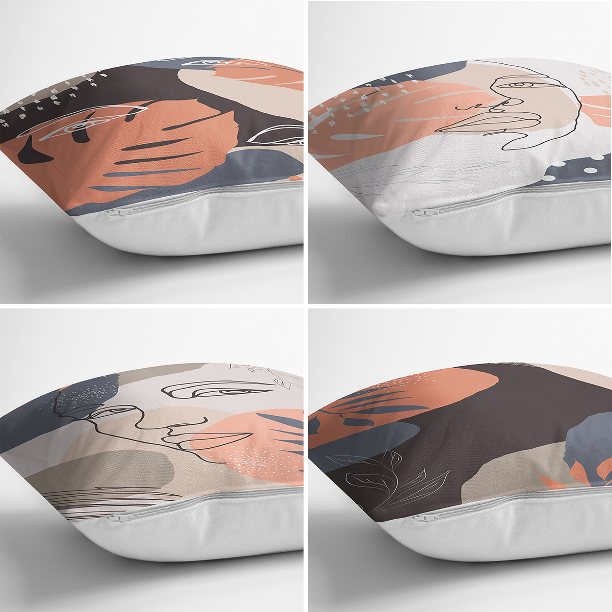 4’lü Renkli Zemin Üzerinde Onedraw Çizimli Bayan Silüeti Modern Yastık Kırlent Kılıf Seti
