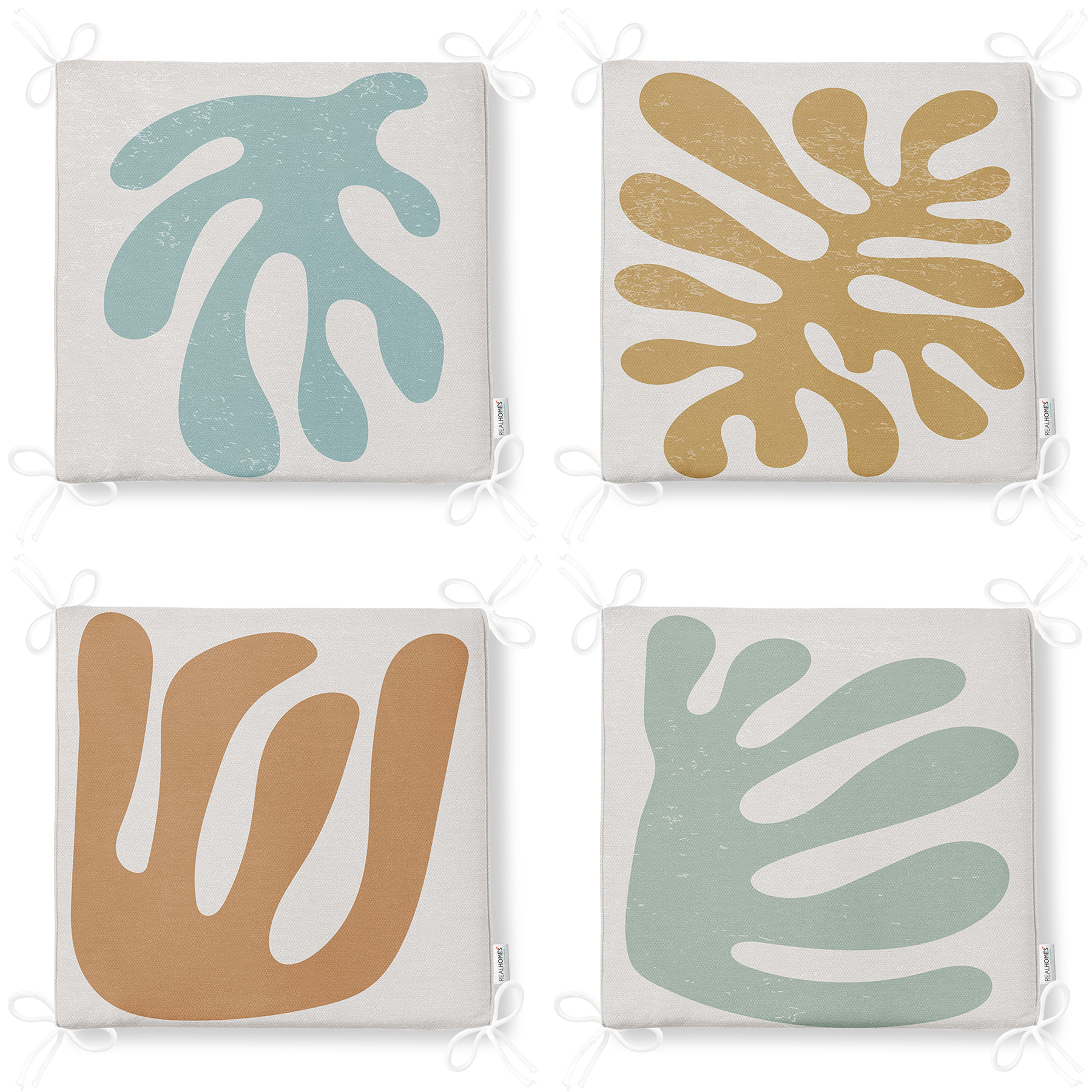 4'lü Renkli Zemin Üzerinde Onedraw Çizimli Modern Fermuarlı Sandalye Minderi Seti Realhomes