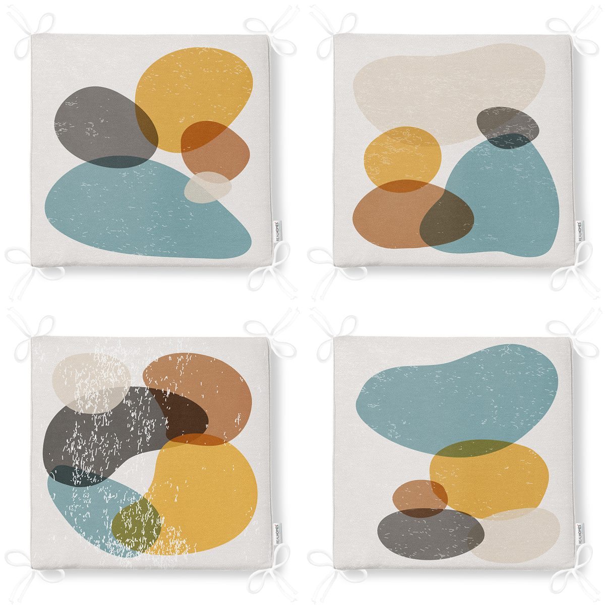 4'lü Renkli Zemin Üzerinde Onedraw Çizimli Modern Fermuarlı Sandalye Minderi Seti Realhomes