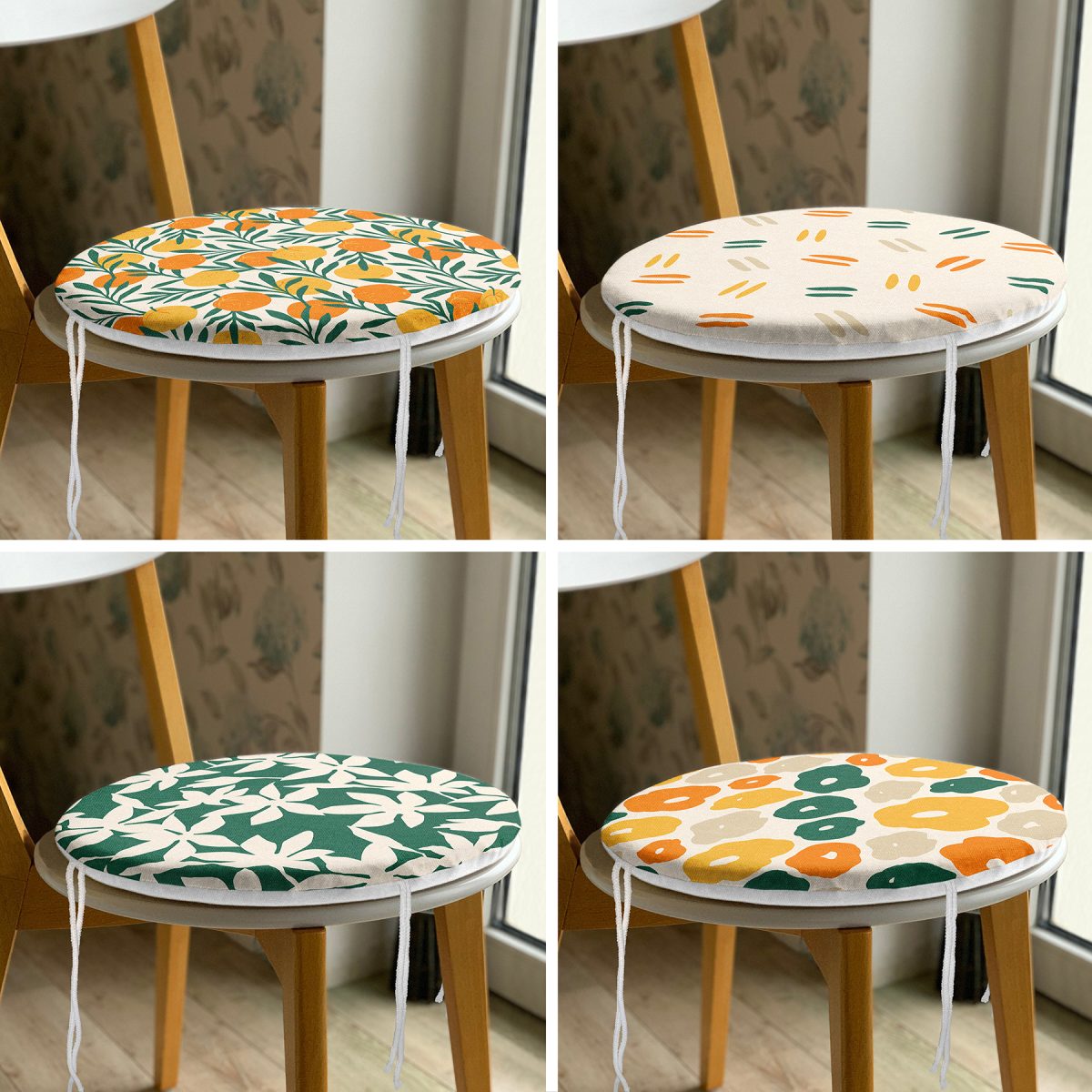 4'lü Renkli Zemin Üzerinde Onedraw Çizimli Modern Yuvarlak Fermuarlı Sandalye Minderi Seti Realhomes