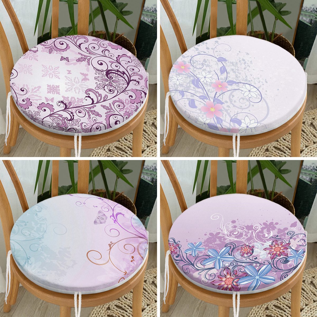 4'lü Sarmaşık Çiçekler Tasarımlı Yuvarlak Fermuarlı Sandalye Minderi Seti Realhomes