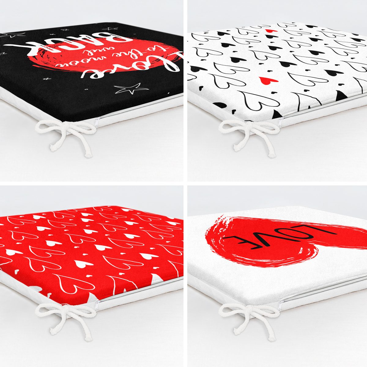 4’lü Sevgililer Günü Konseptli Özel Tasarım Modern Kombin Fermuarlı Sandalye Minderi Seti