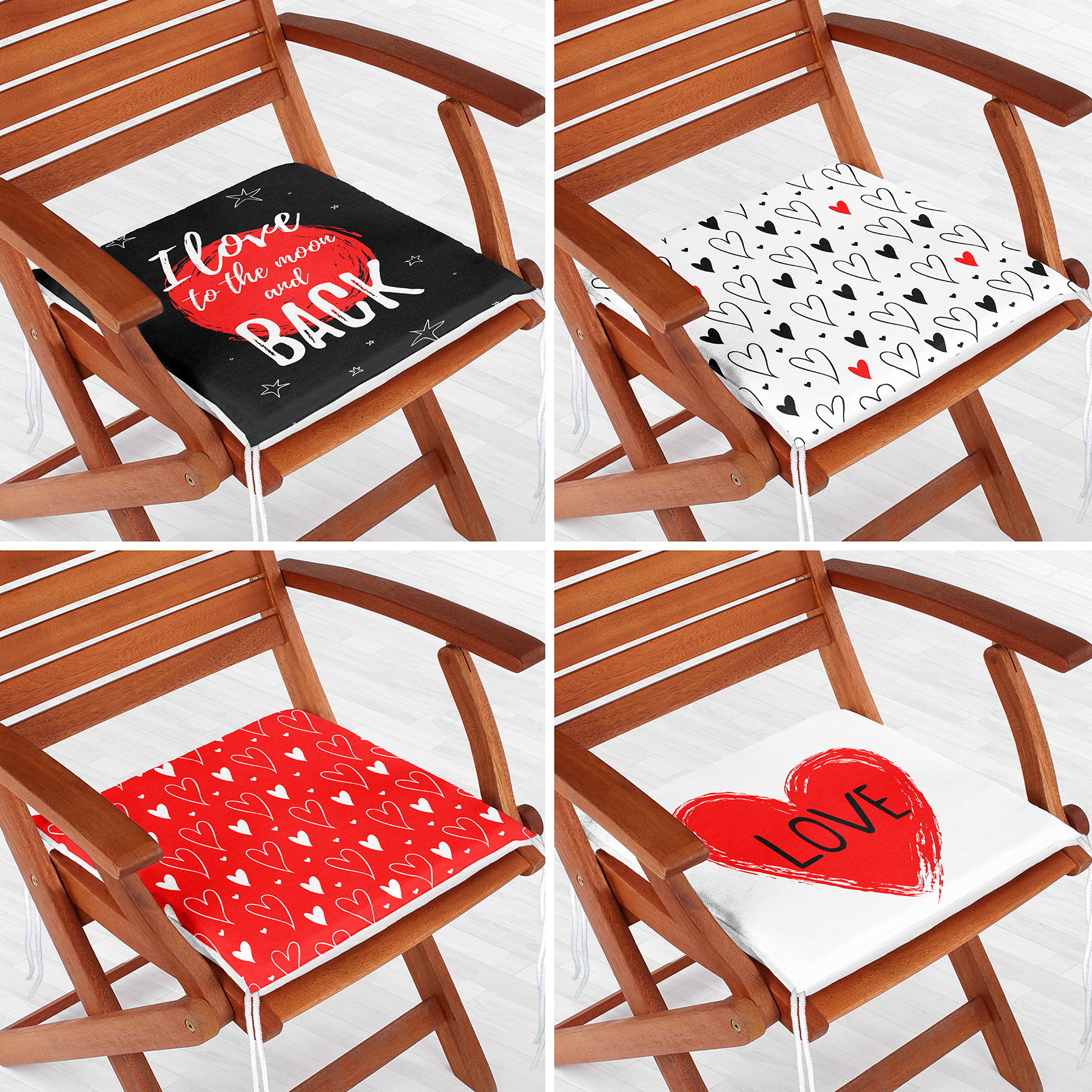 4'lü Sevgililer Günü Konseptli Özel Tasarım Modern Kombin Fermuarlı Sandalye Minderi Seti Realhomes
