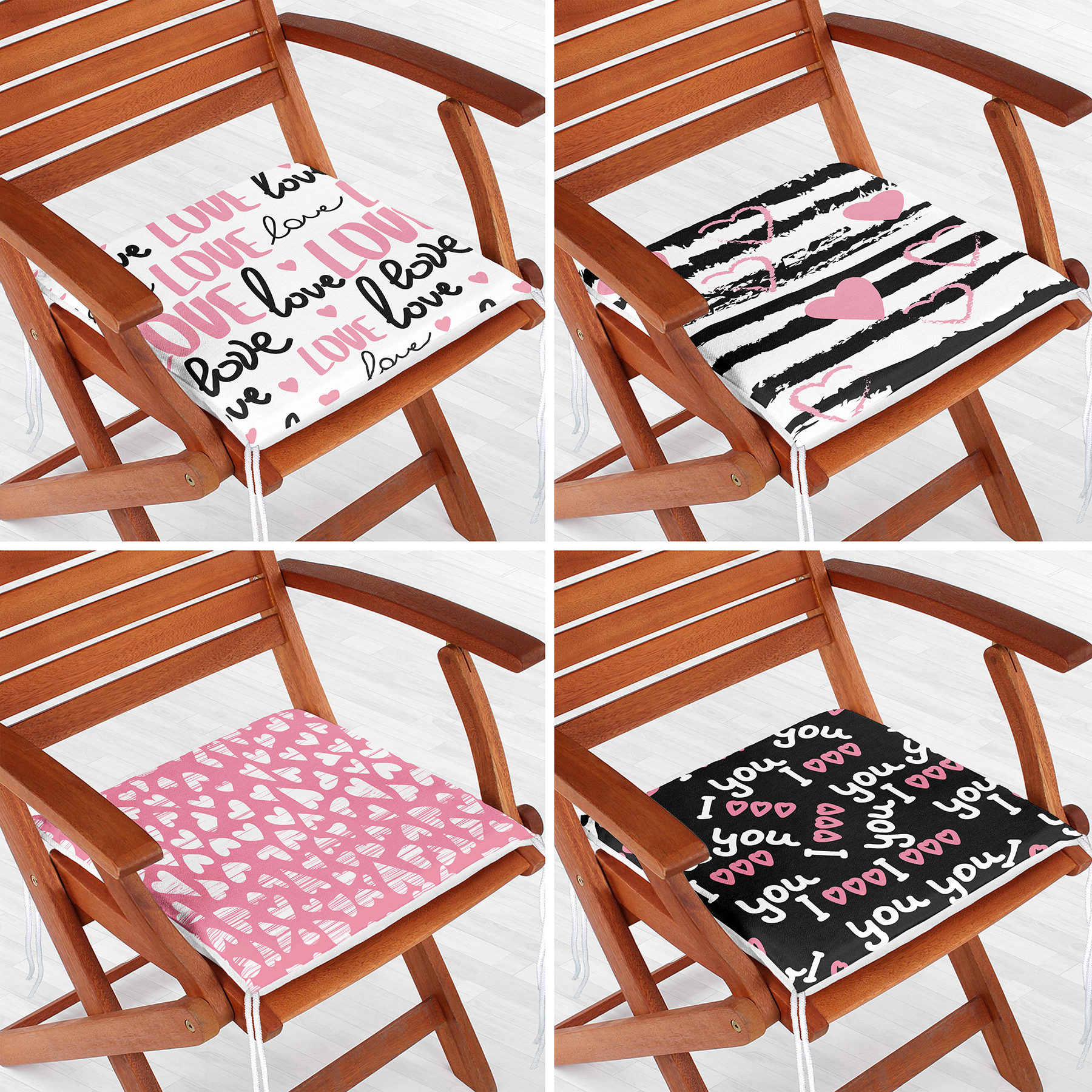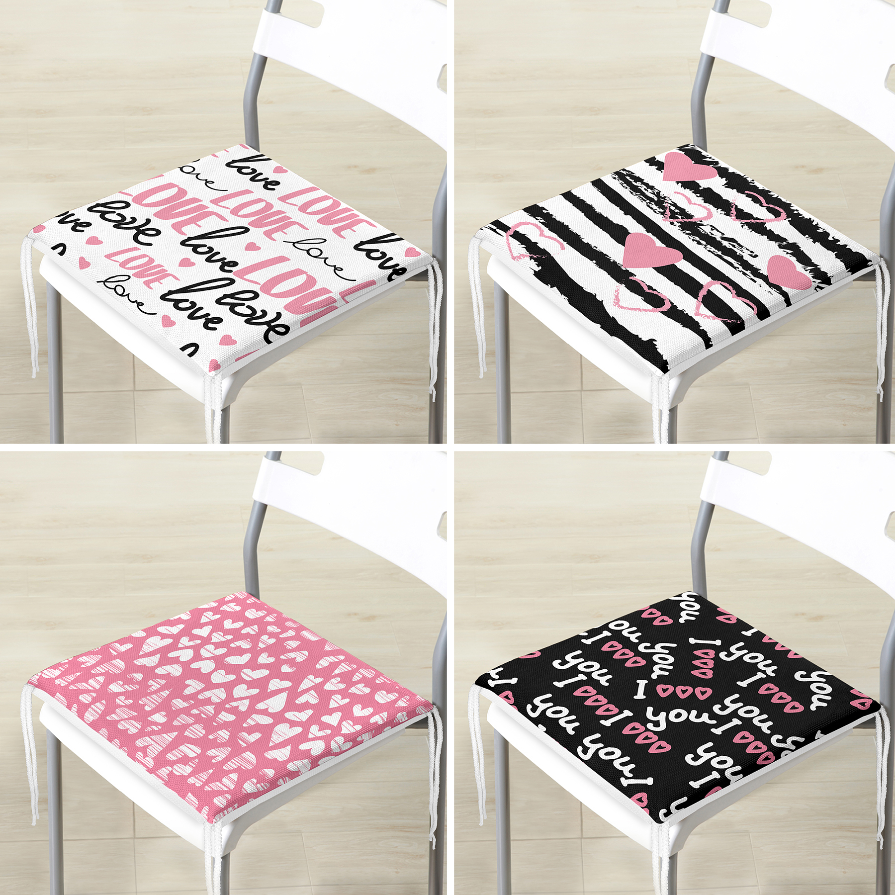 4’lü Sevgililer Günü Konseptli Özel Tasarım Modern Kombin Fermuarlı Sandalye Minderi Seti