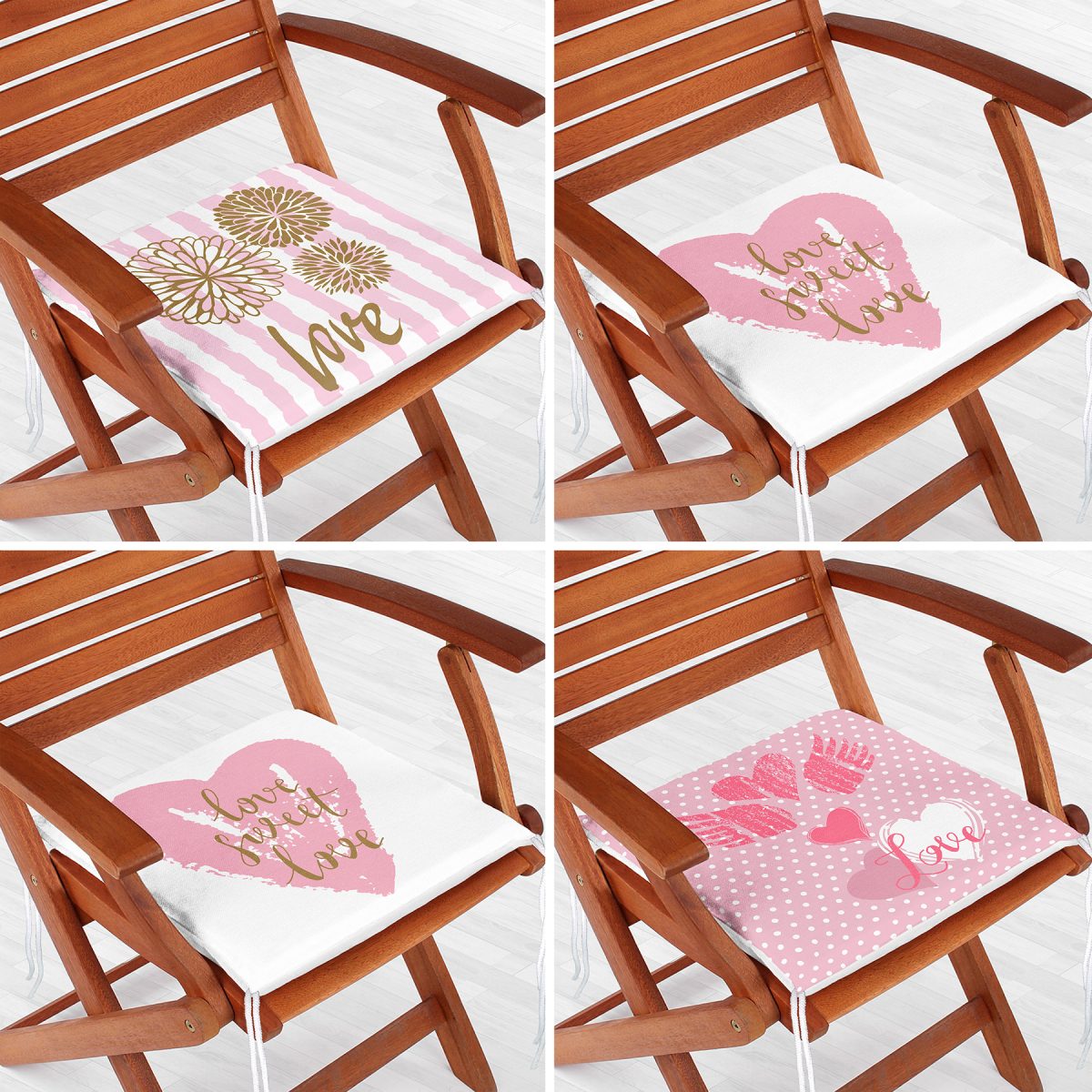 4’lü Sevgililer Günü Konseptli Özel Tasarım Modern Kombin Fermuarlı Sandalye Minderi Seti