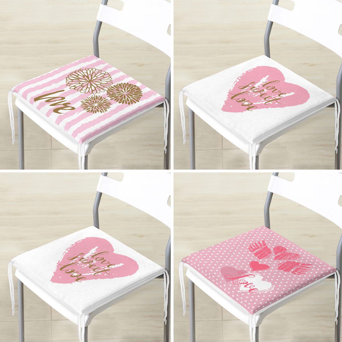 4'lü Sevgililer Günü Konseptli Özel Tasarım Modern Kombin Fermuarlı Sandalye Minderi Seti Realhomes