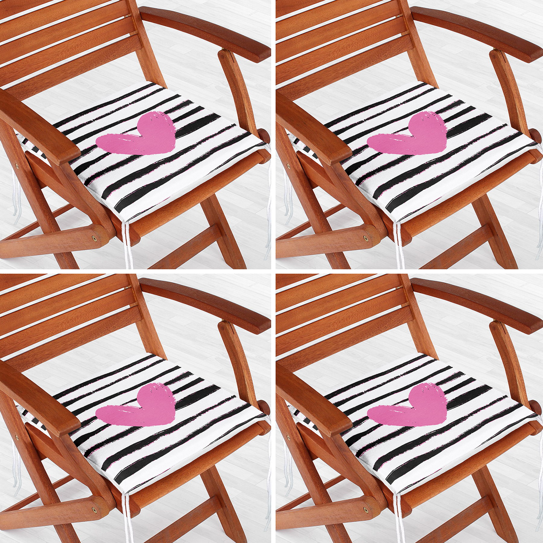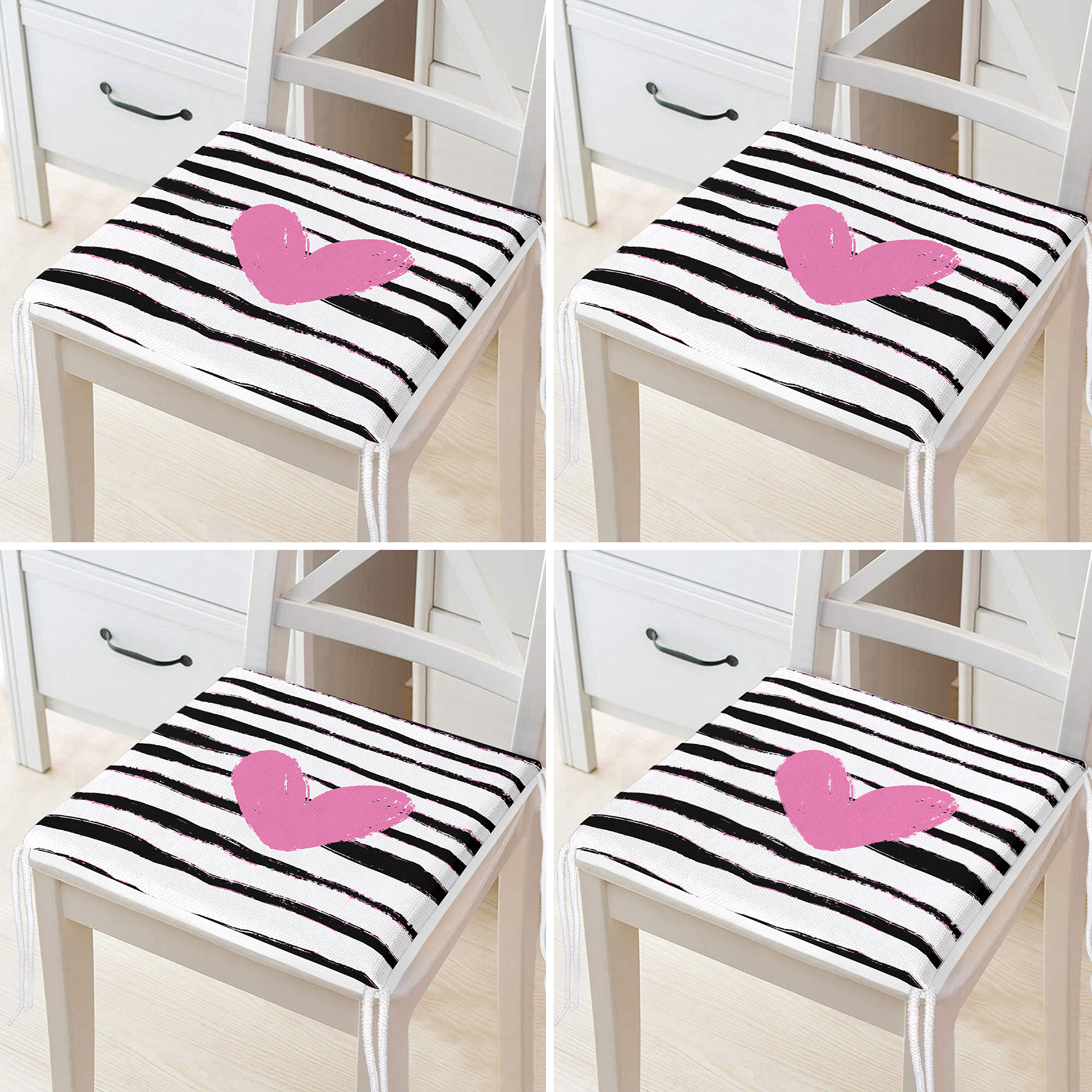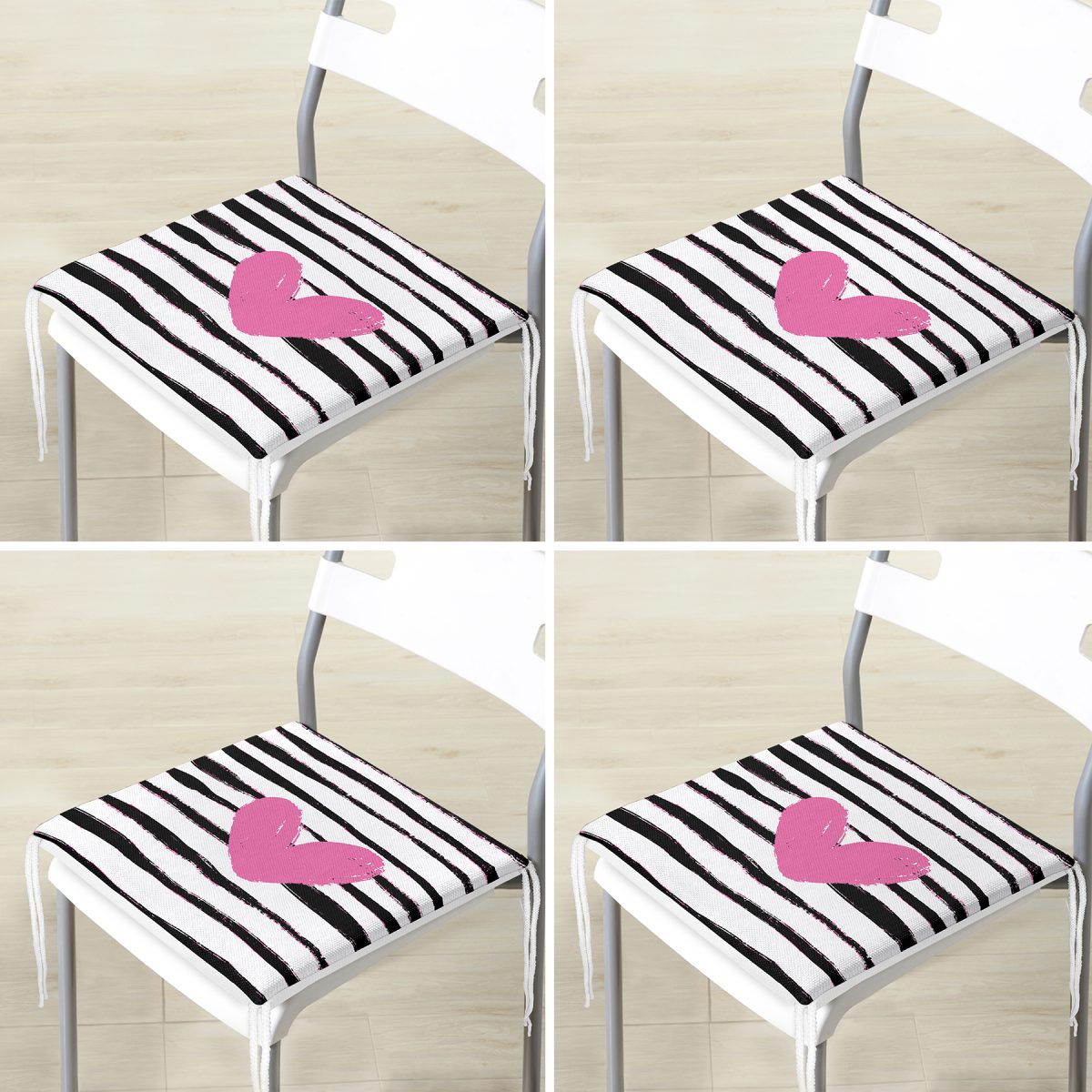 4’lü Sevgililer Günü Konseptli Özel Tasarım Modern Kombin Fermuarlı Sandalye Minderi Seti