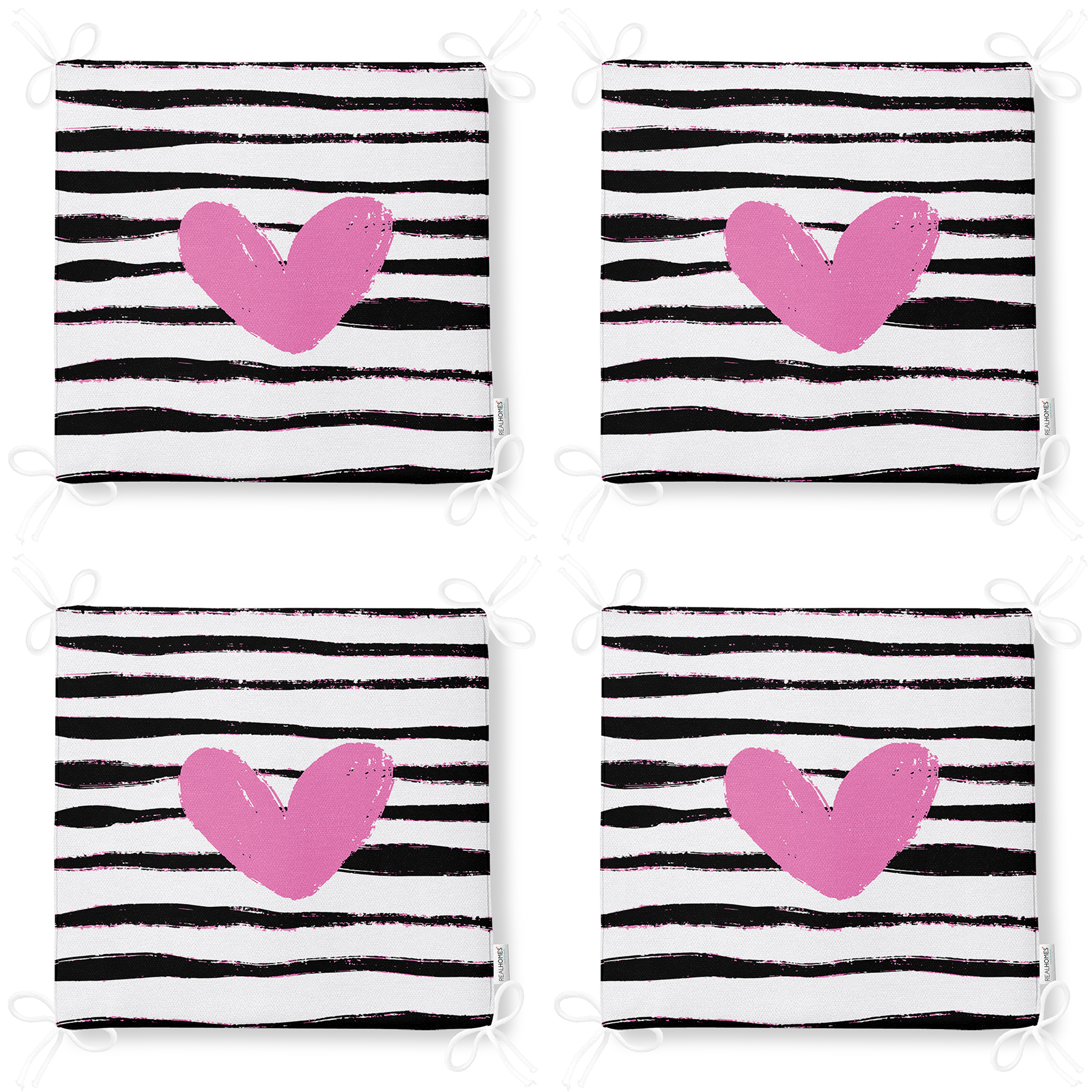 4'lü Sevgililer Günü Konseptli Özel Tasarım Modern Kombin Fermuarlı Sandalye Minderi Seti Realhomes