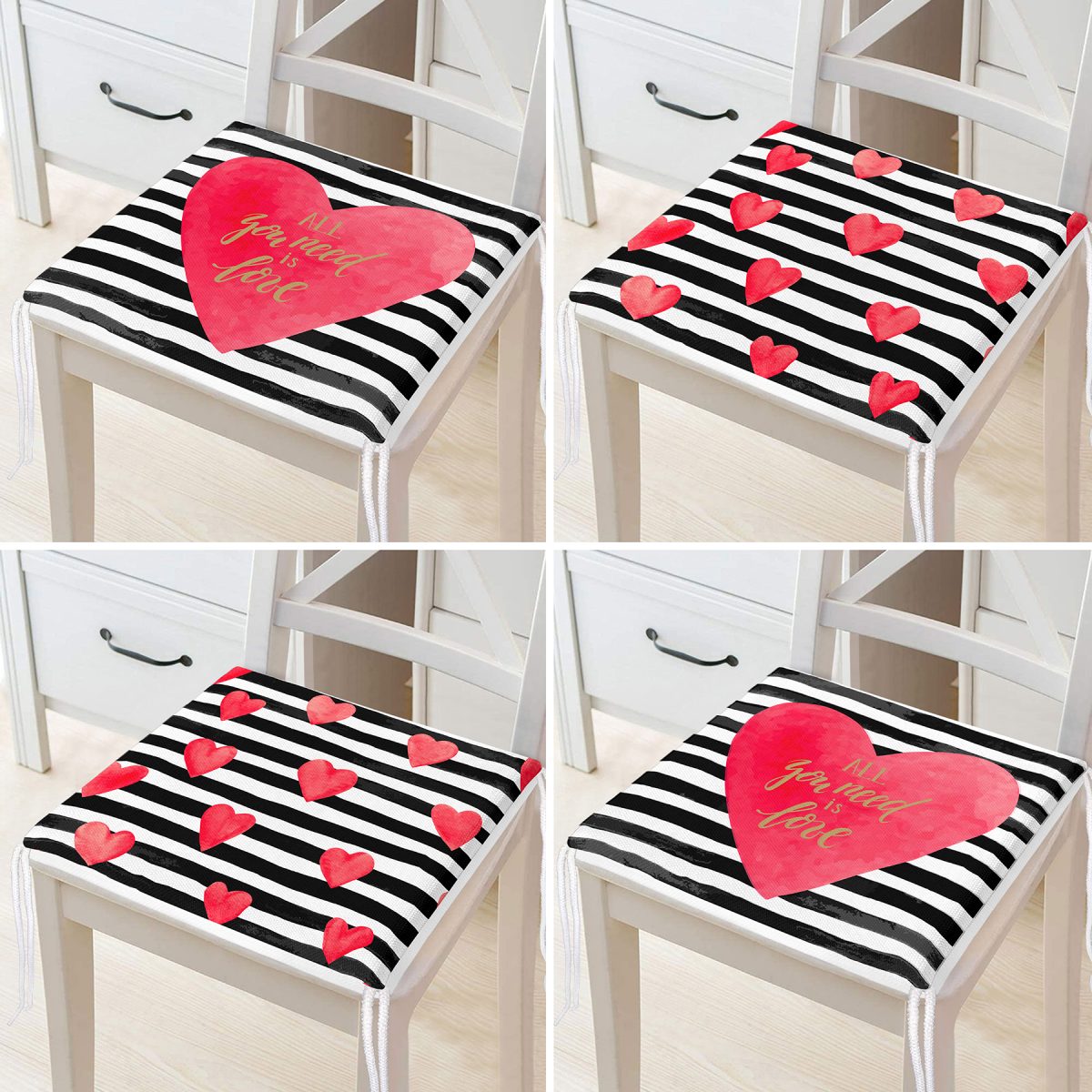 4’lü Sevgililer Günü Konseptli Özel Tasarım Modern Kombin Fermuarlı Sandalye Minderi Seti