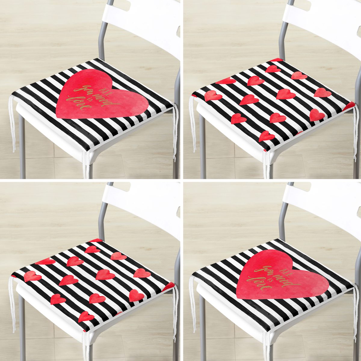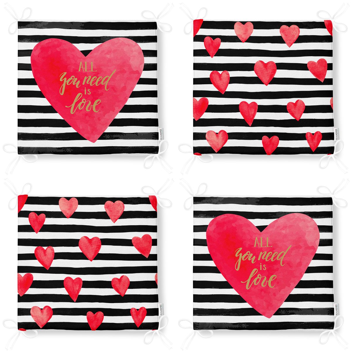 4'lü Sevgililer Günü Konseptli Özel Tasarım Modern Kombin Fermuarlı Sandalye Minderi Seti Realhomes