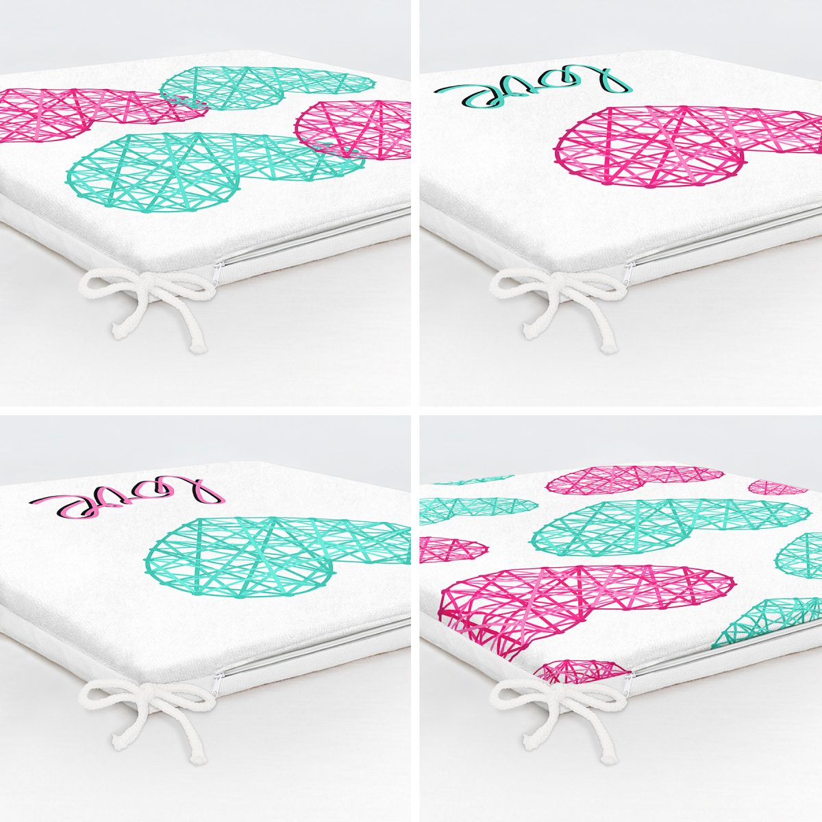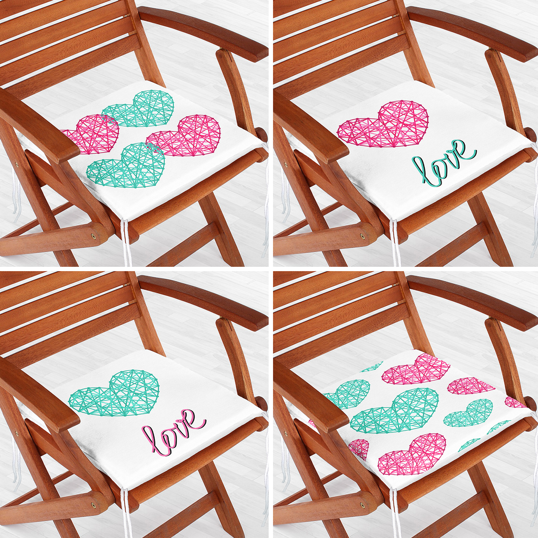 4'lü Sevgililer Günü Konseptli Özel Tasarım Modern Kombin Fermuarlı Sandalye Minderi Seti Realhomes