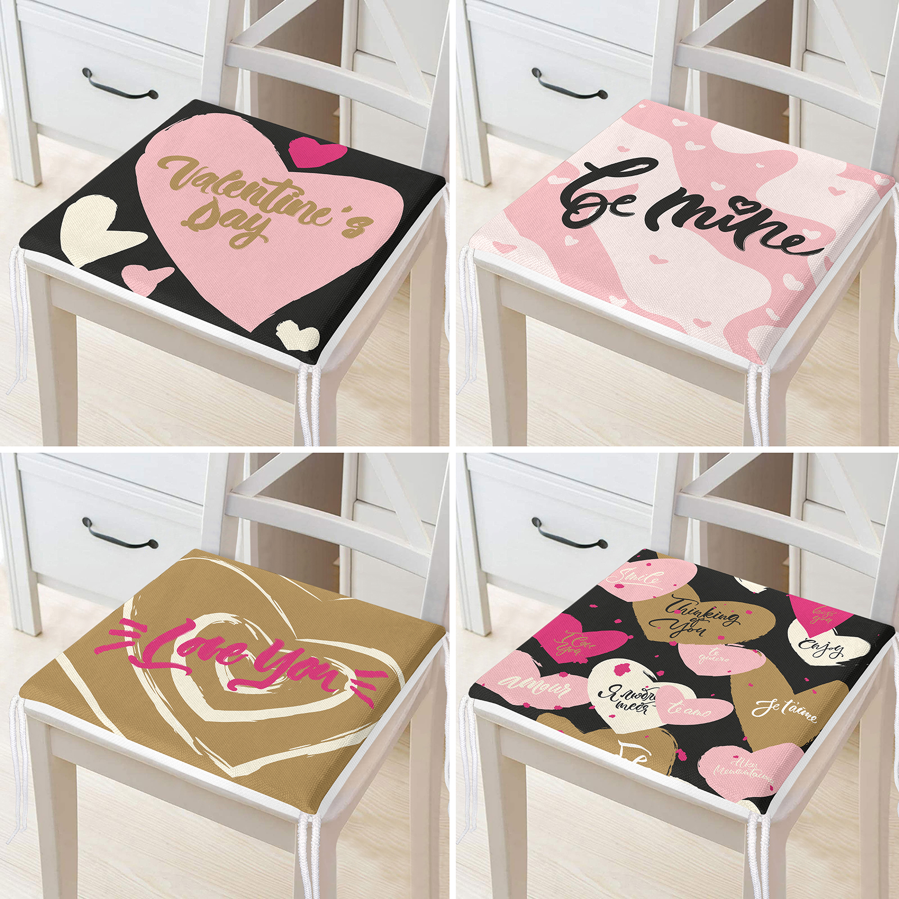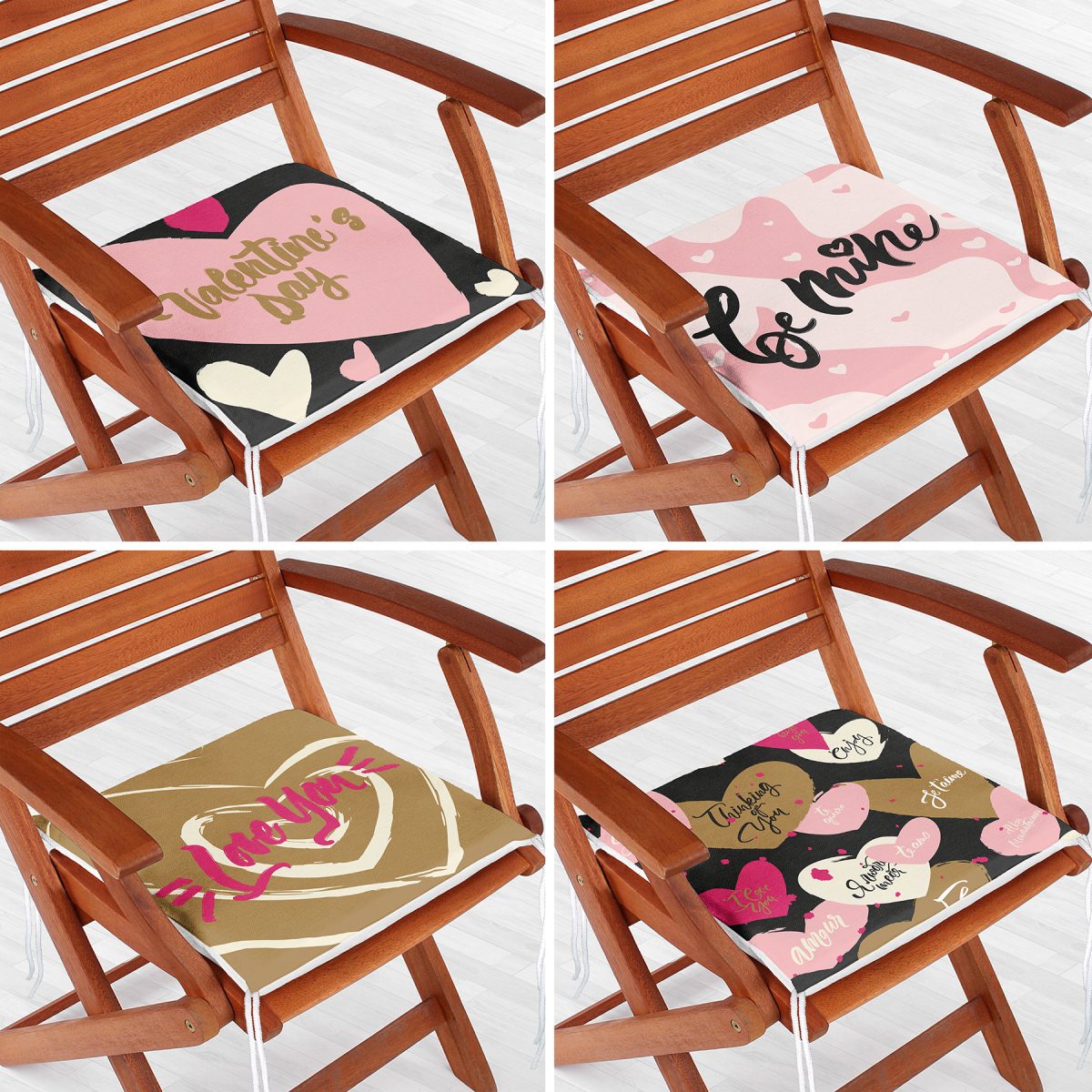 4’lü Sevgililer Günü Konseptli Özel Tasarım Modern Kombin Fermuarlı Sandalye Minderi Seti