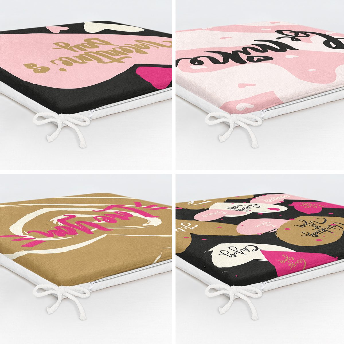 4'lü Sevgililer Günü Konseptli Özel Tasarım Modern Kombin Fermuarlı Sandalye Minderi Seti Realhomes