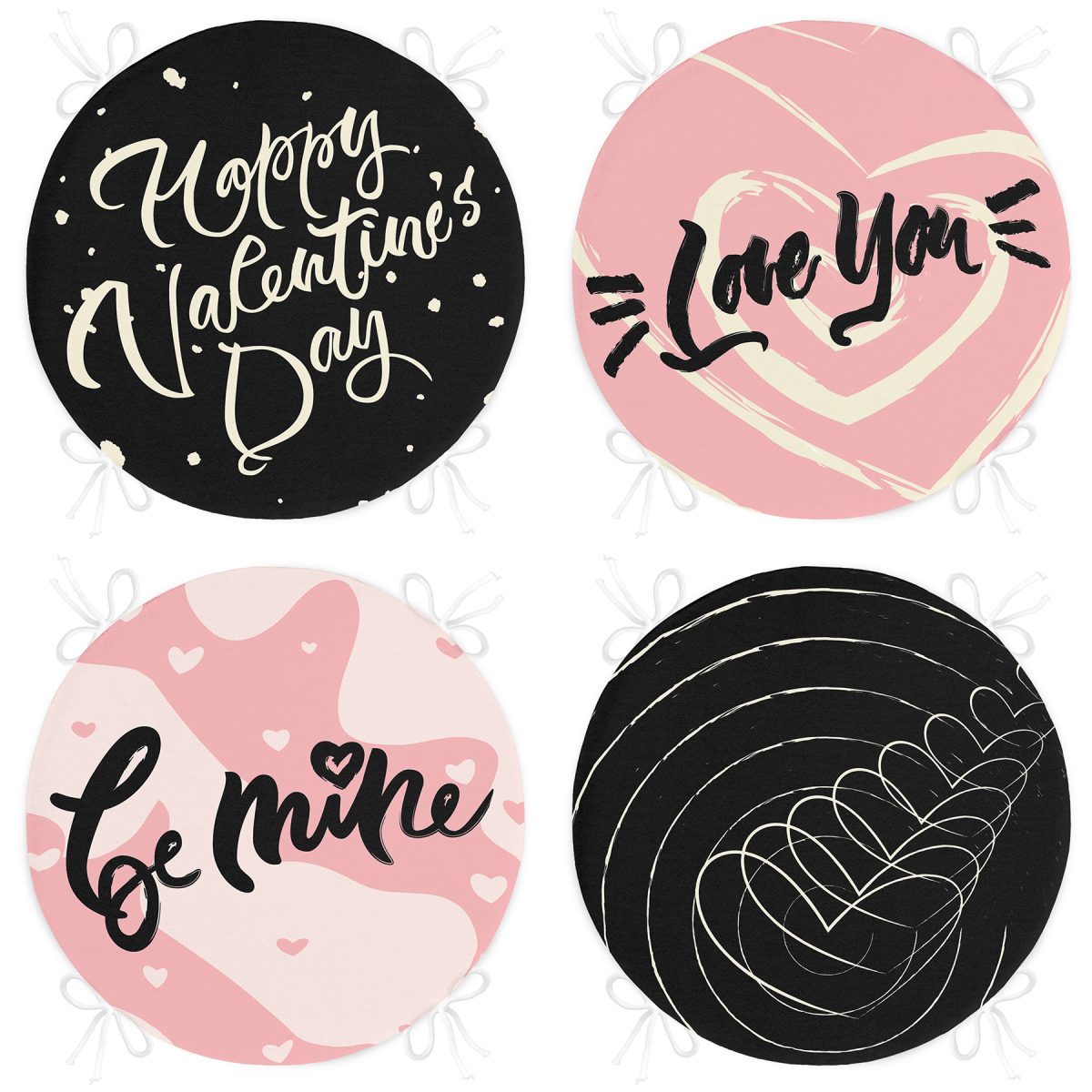 4’lü Sevgililer Günü Konseptli Özel Tasarım Modern Kombin Yuvarlak Fermuarlı Sandalye Minderi Seti