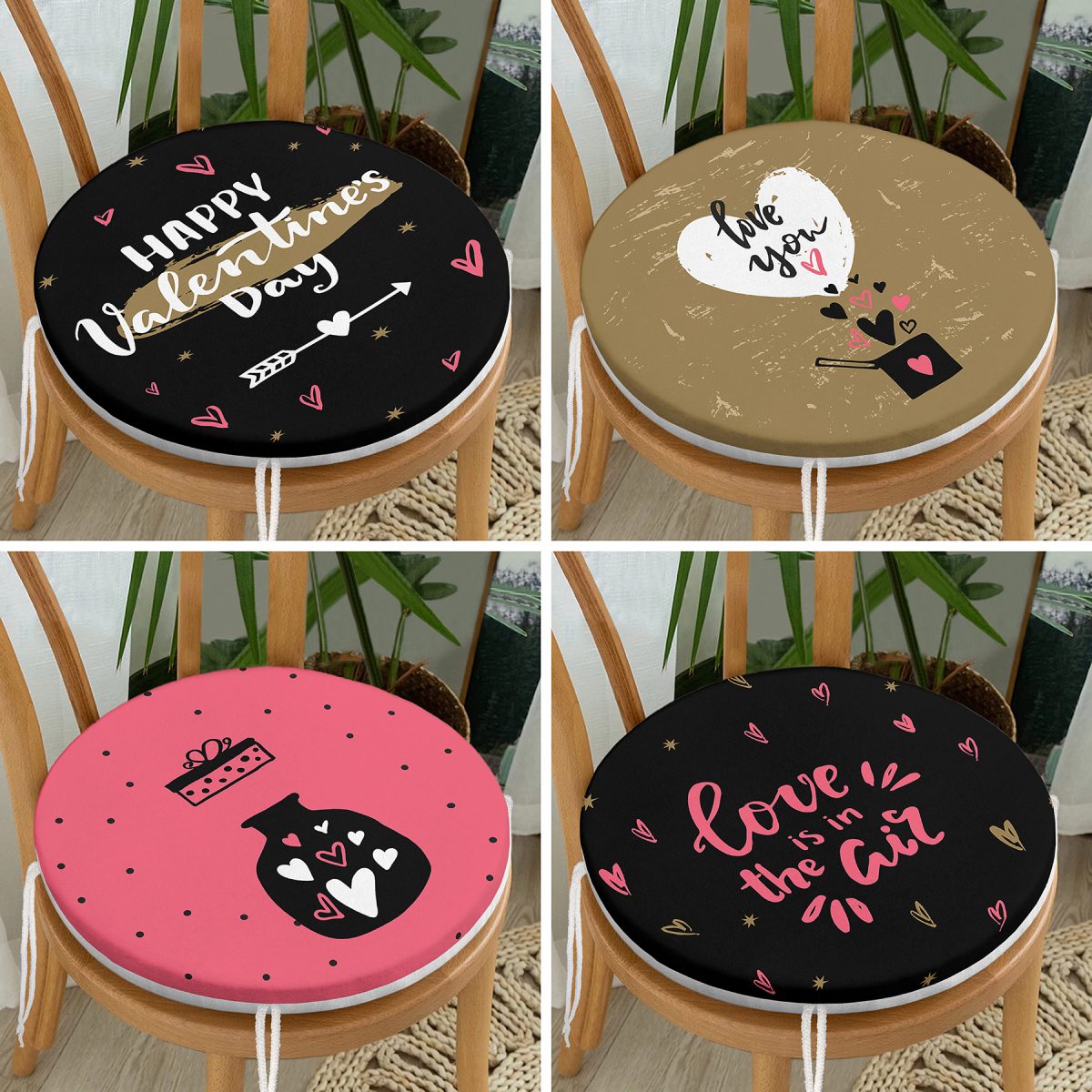 4’lü Sevgililer Günü Konseptli Özel Tasarım Modern Kombin Yuvarlak Fermuarlı Sandalye Minderi Seti