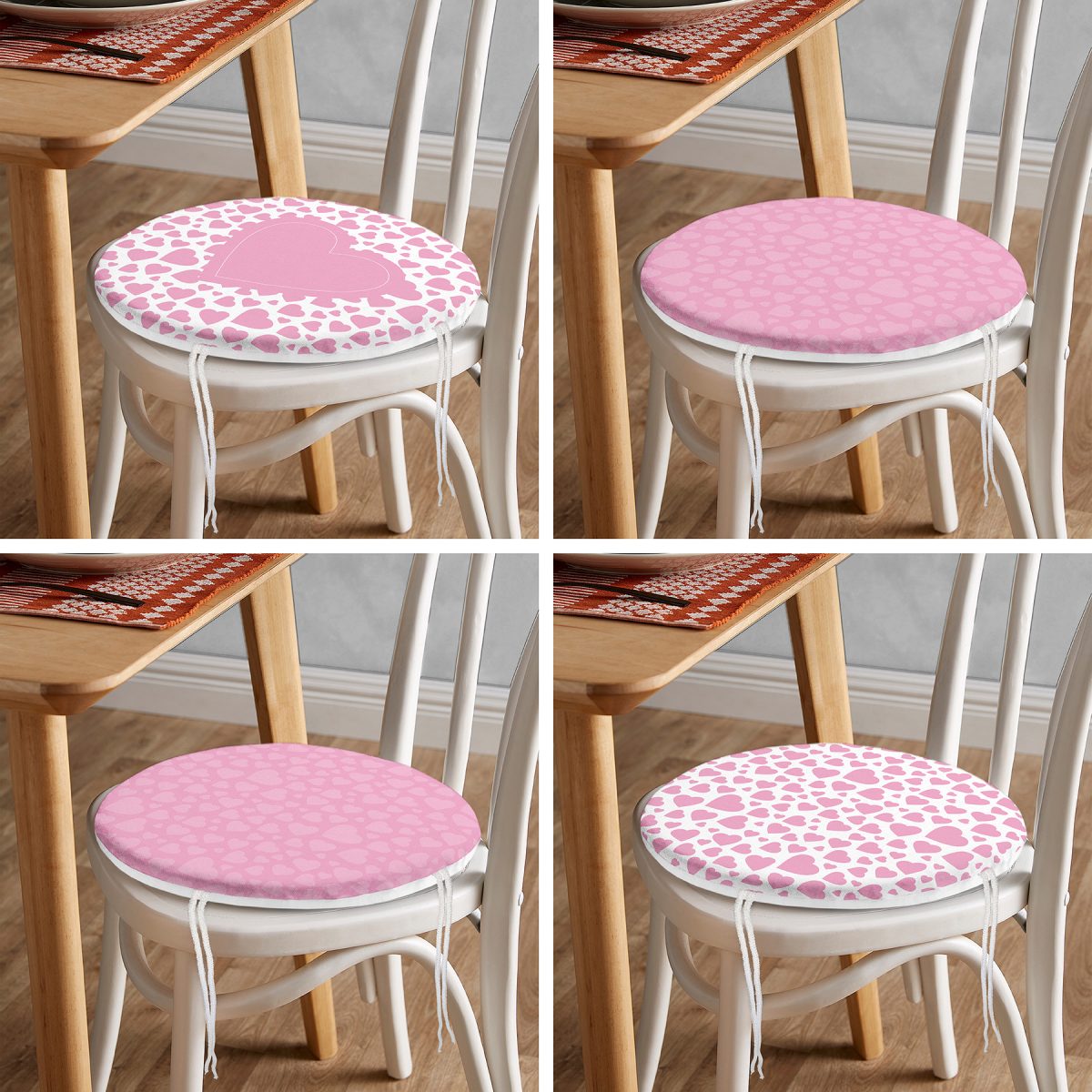 4’lü Sevgililer Günü Konseptli Özel Tasarım Modern Kombin Yuvarlak Fermuarlı Sandalye Minderi Seti