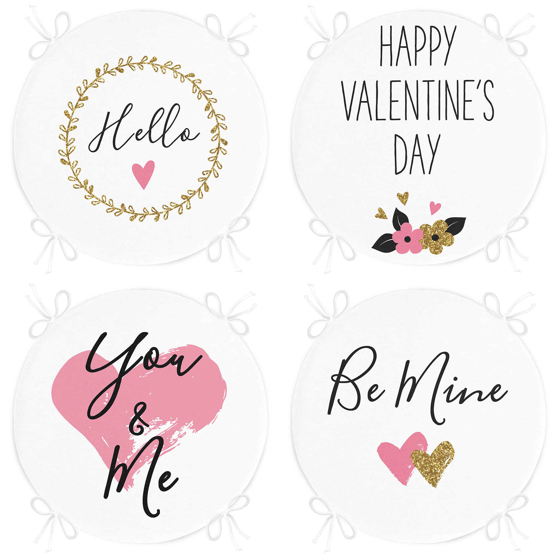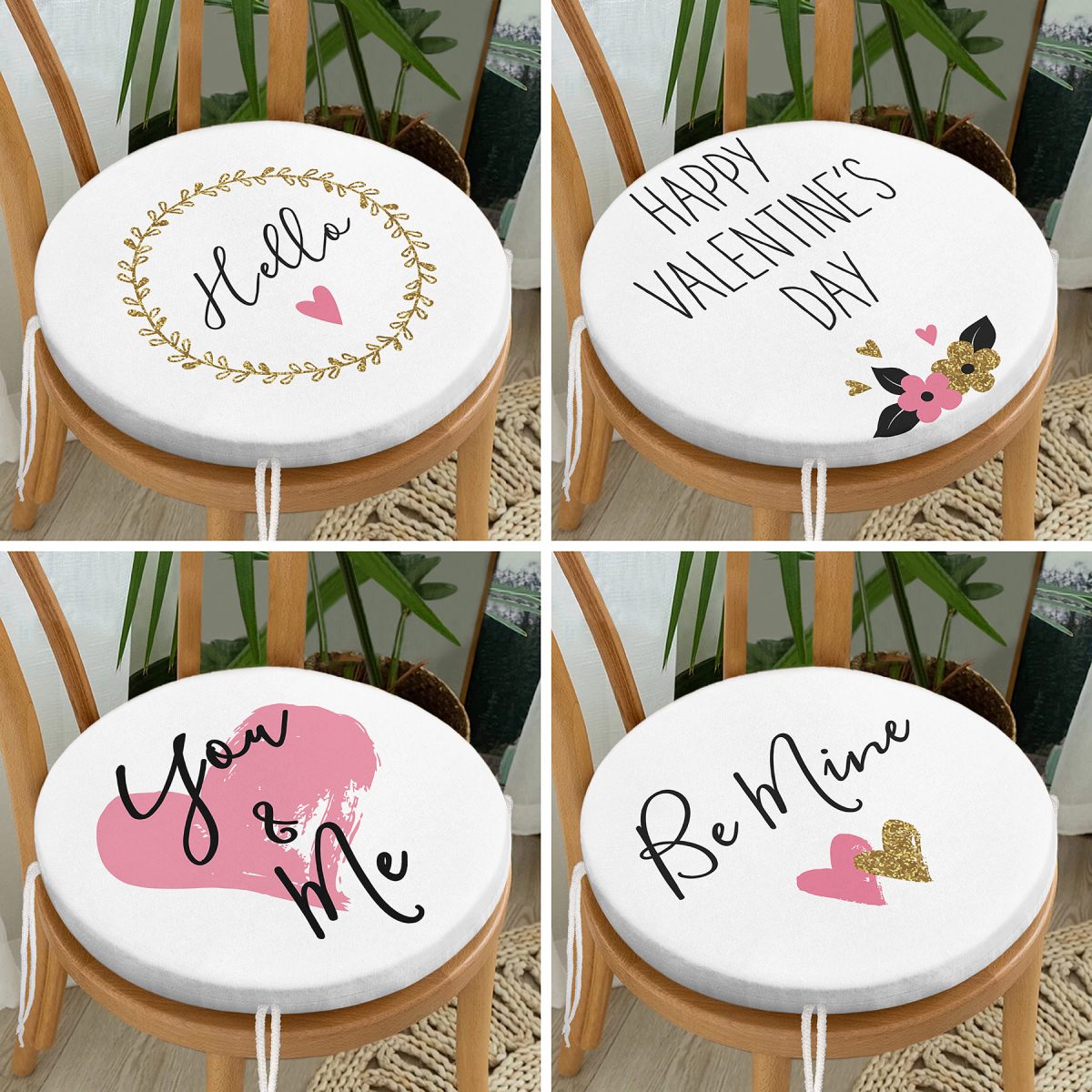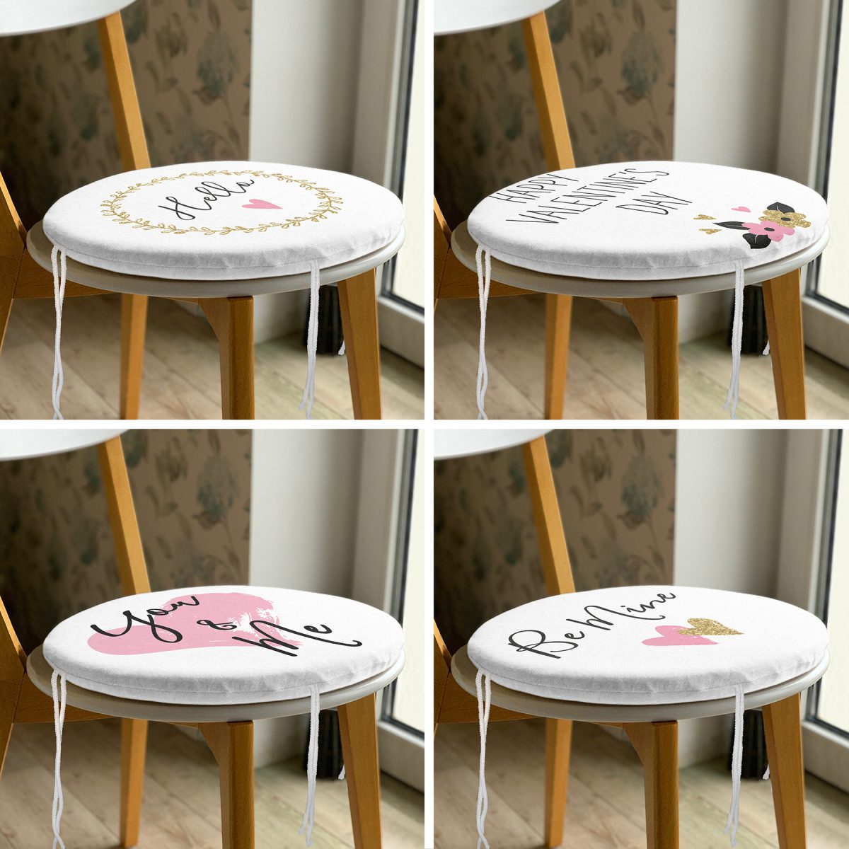 4’lü Sevgililer Günü Konseptli Özel Tasarım Modern Kombin Yuvarlak Fermuarlı Sandalye Minderi Seti