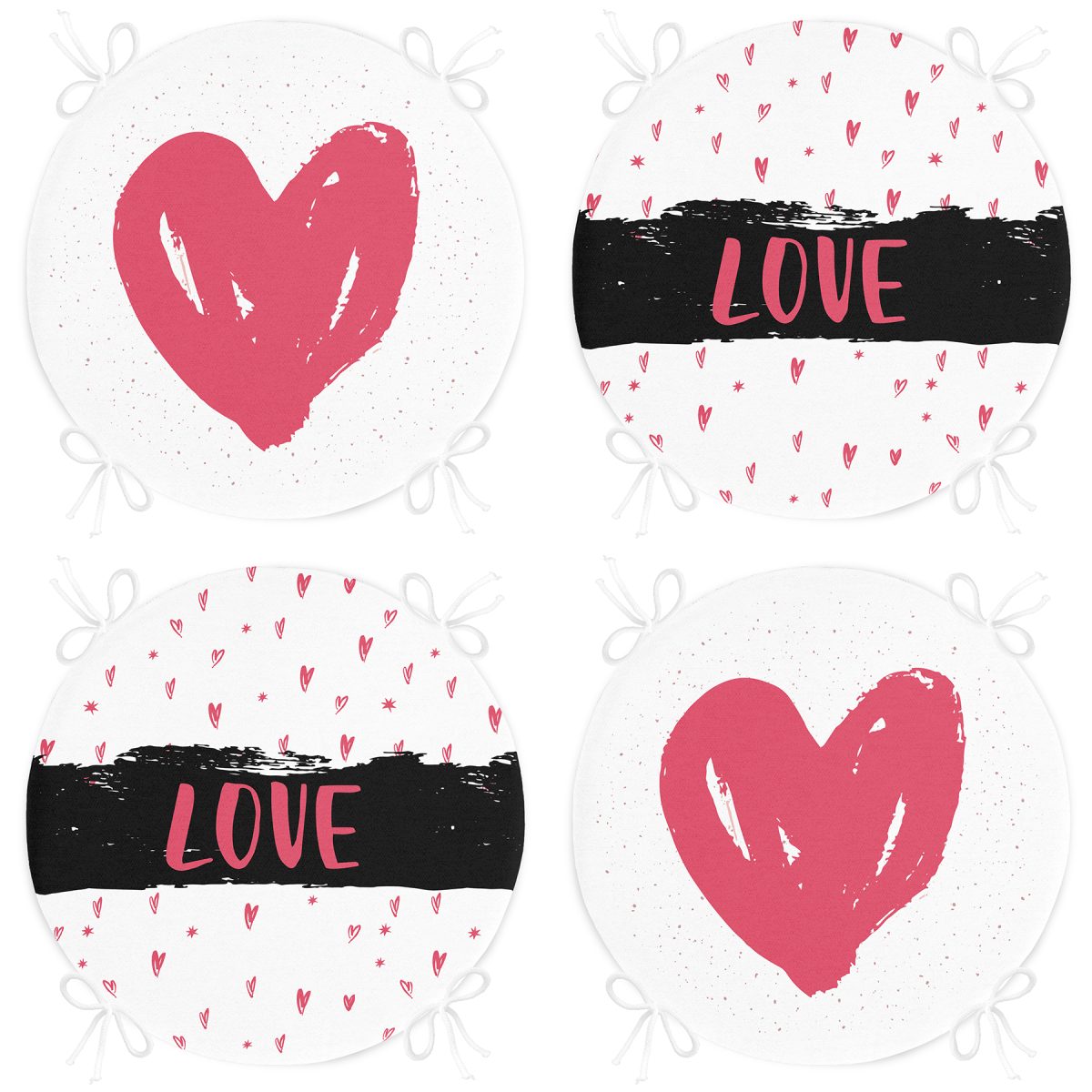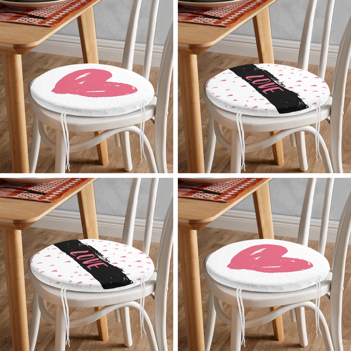 4’lü Sevgililer Günü Konseptli Özel Tasarım Modern Kombin Yuvarlak Fermuarlı Sandalye Minderi Seti