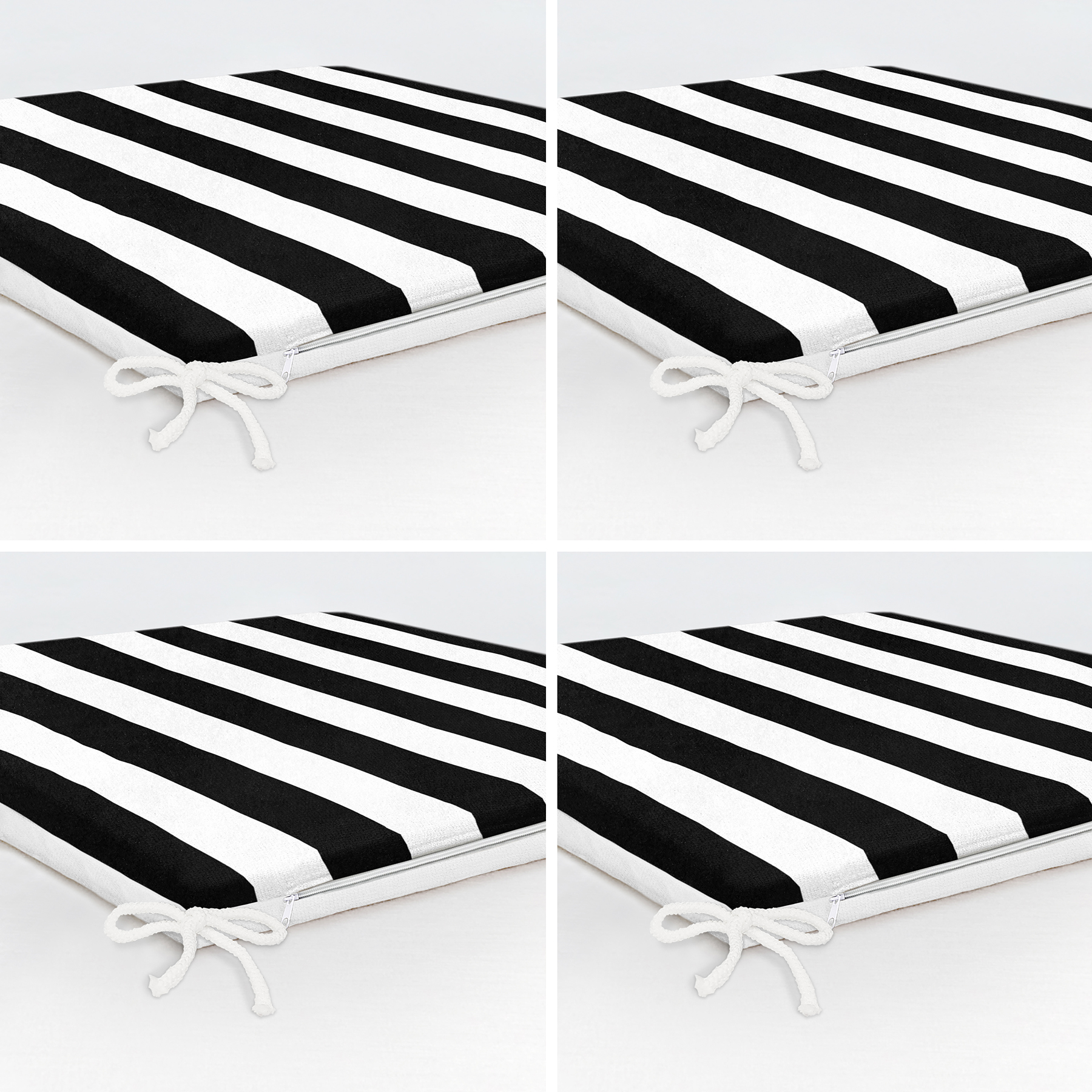 4’lü Siyah Beyaz Çizgili Dijital Baskılı Fermuarlı Sandalye Minderi Seti