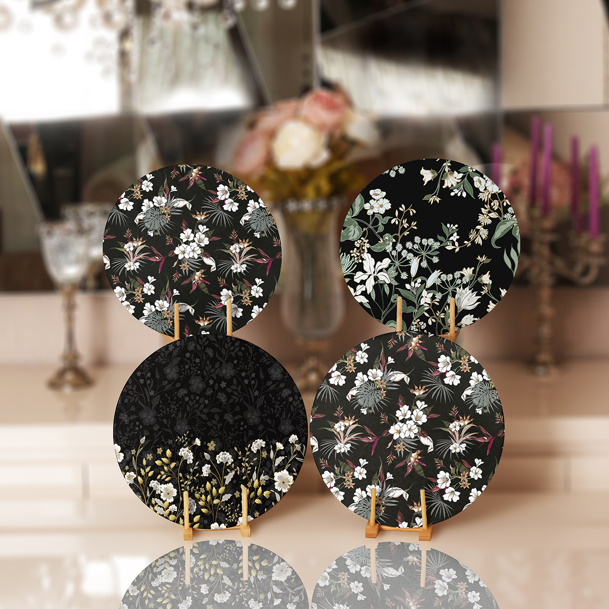 4’lü Siyah Zemin Çiçek Tasarımlı Servis Altlığı & Supla