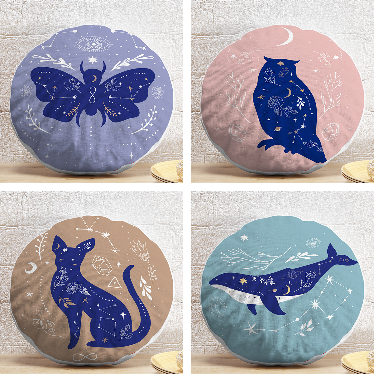 4'lü Soyut Sevimli Hayvan Baskılı Yuvarlak Yastık Kırlent Kılıf Seti Realhomes