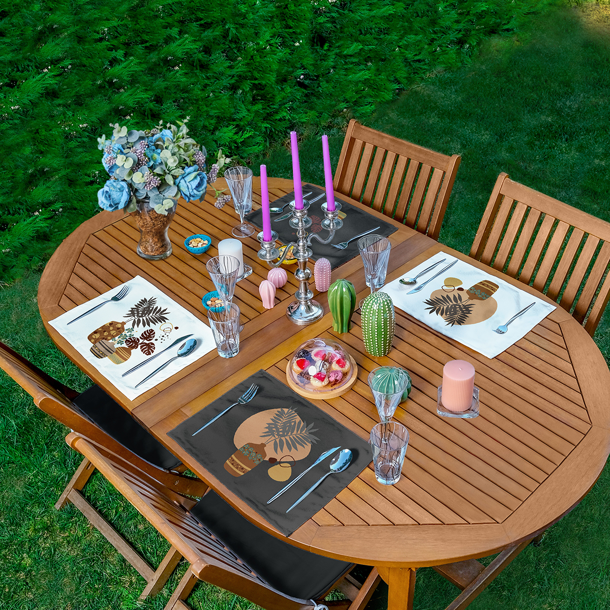4’lü Tropik Yapraklar Saksı Motifli Dijital Baskılı Sunumluk – Sunum Altlığı – Amerikan Servis Seti