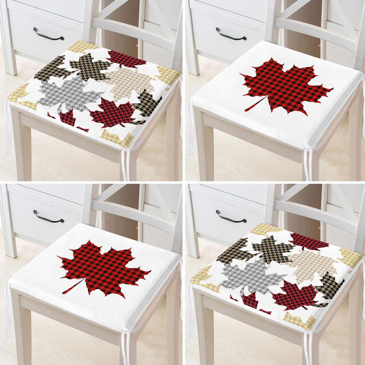 4'lü Yaprak Tasarımlı Ekoseli Yılbaşı Konsept Modern Fermuarlı Sandalye Minderi Seti Realhomes