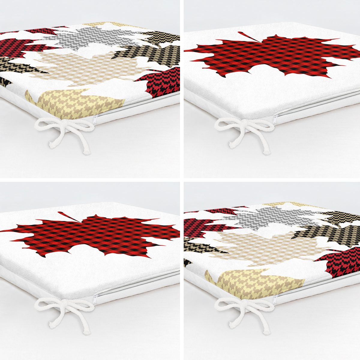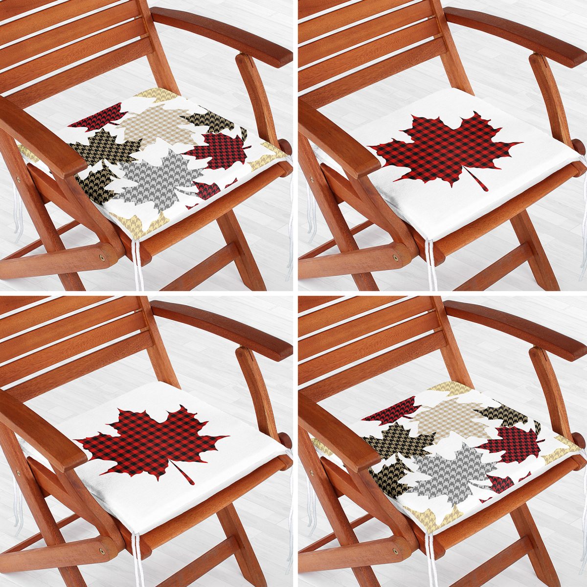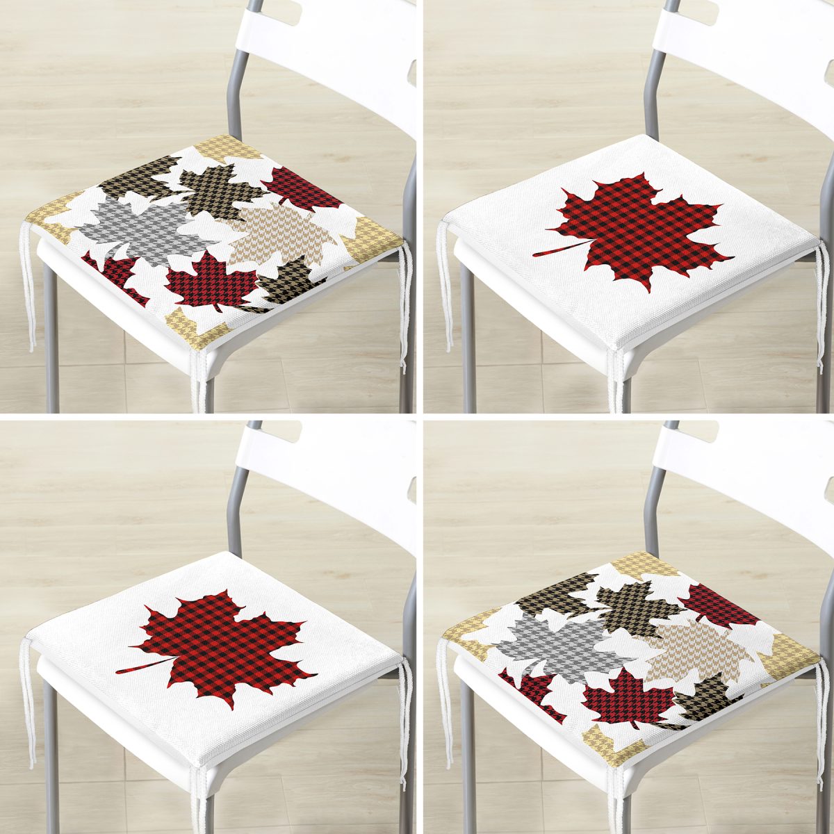 4’lü Yaprak Tasarımlı Ekoseli Yılbaşı Konsept Modern Fermuarlı Sandalye Minderi Seti
