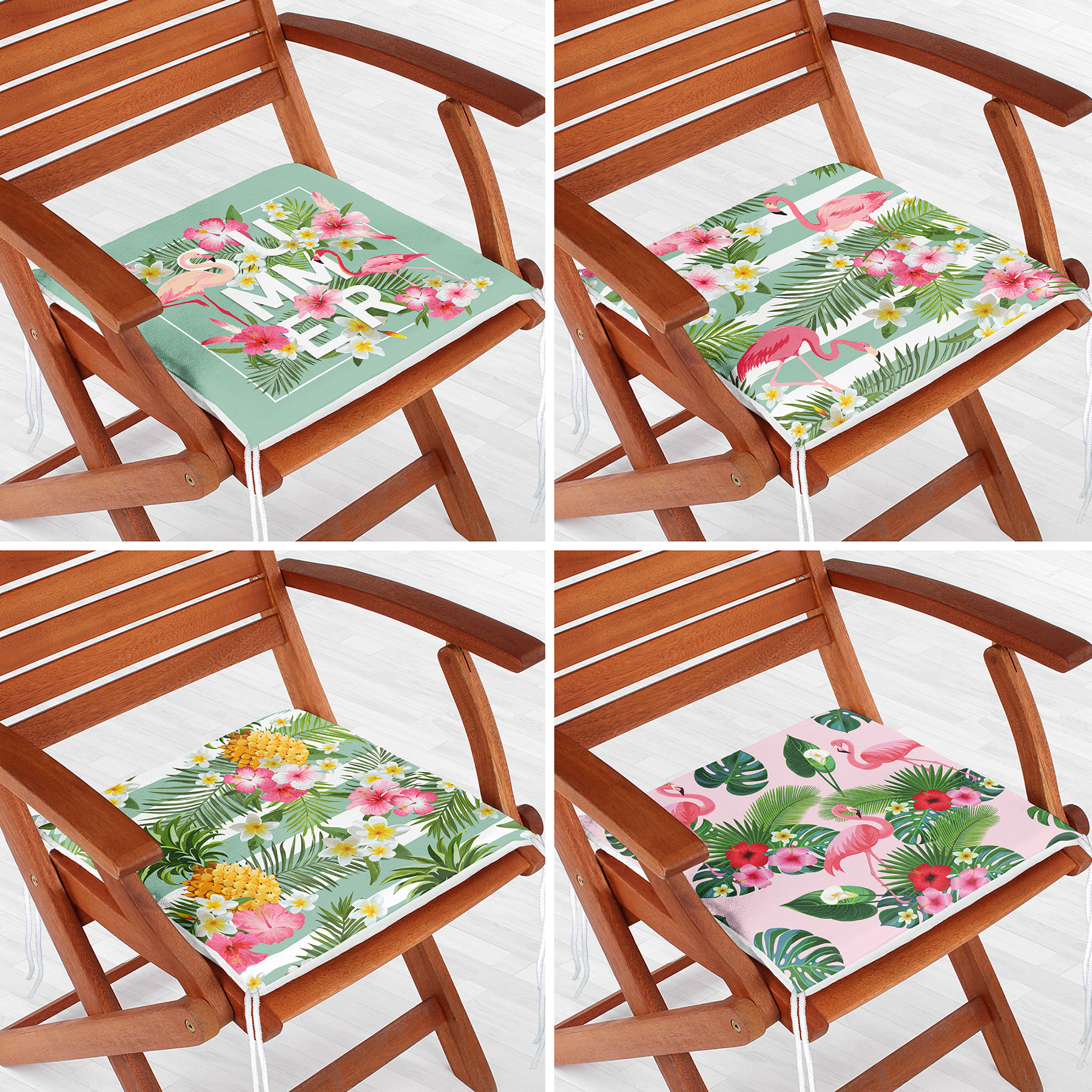 4’lü Yeşil Summer Temalı Flamingo Motifli Fermuarlı Sandalye Minderi Seti