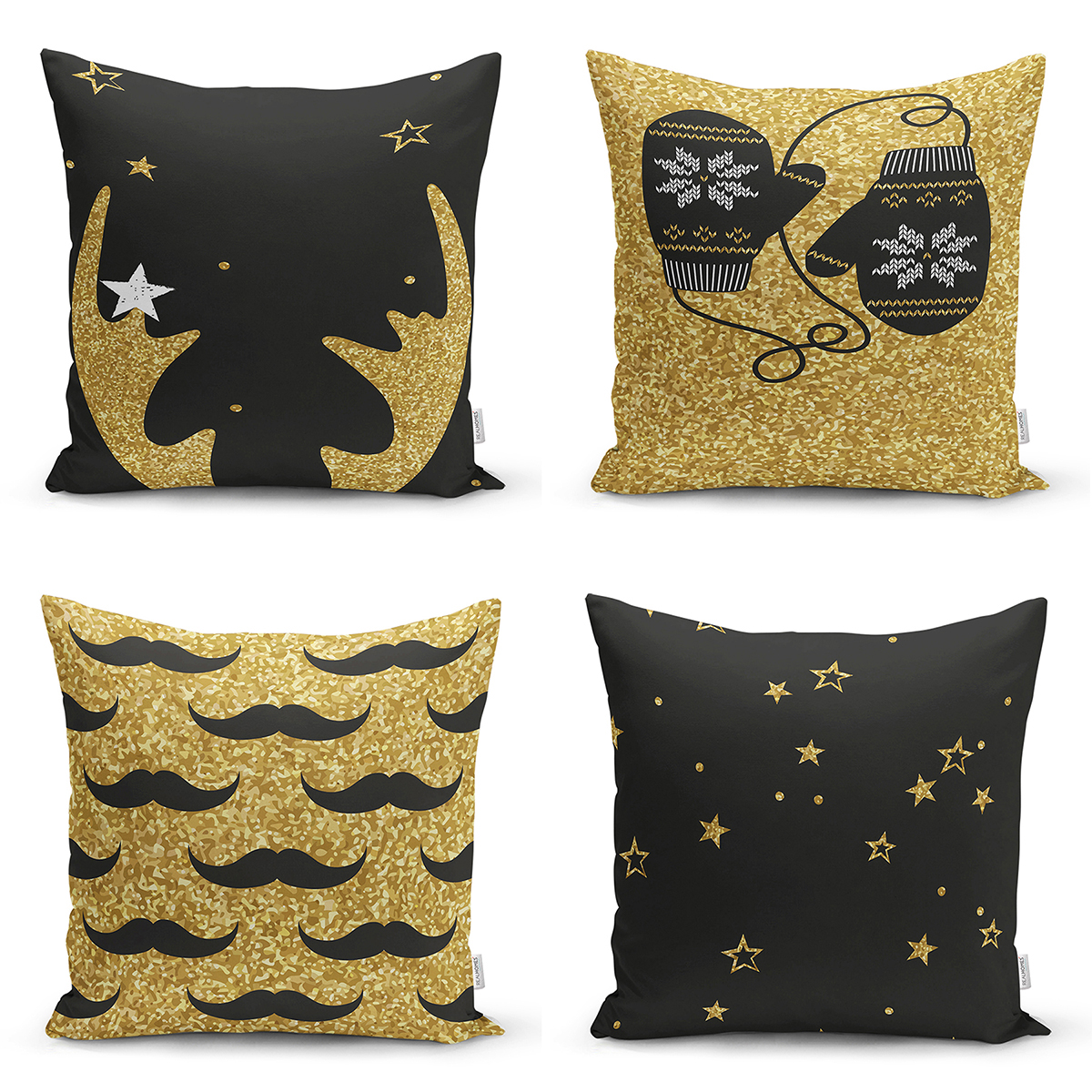 4’lü Yılbaşı Konseptli Altın Varaklı Özel Tasarım Modern Yastık Kırlent Kılıf Seti