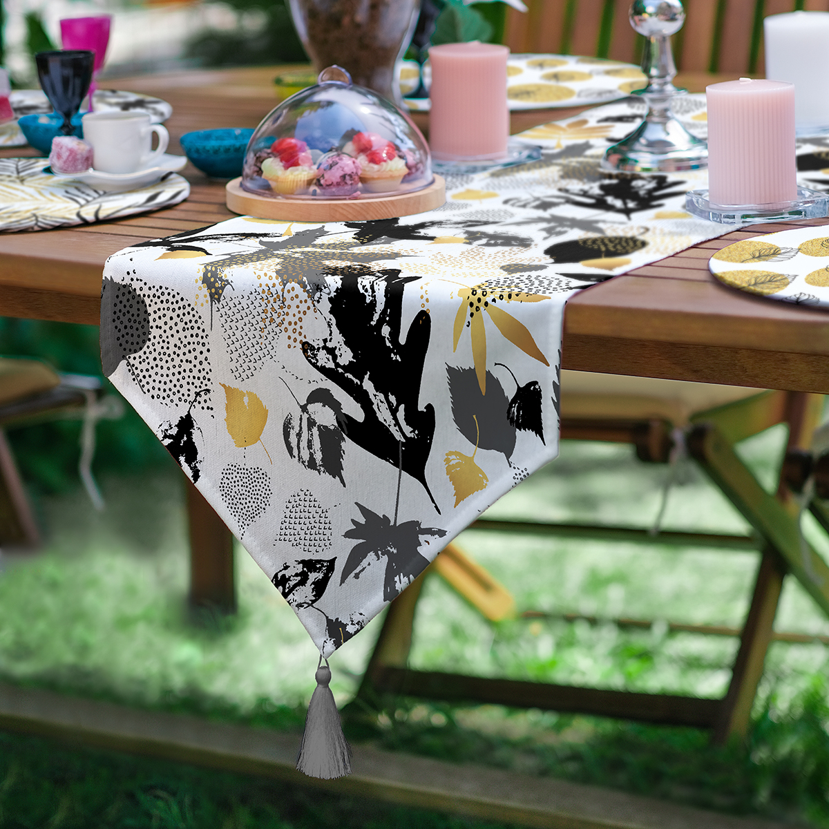 6+1'li Altın Varaklı Yaprak Tasarımlı Supla Runner Seti Realhomes