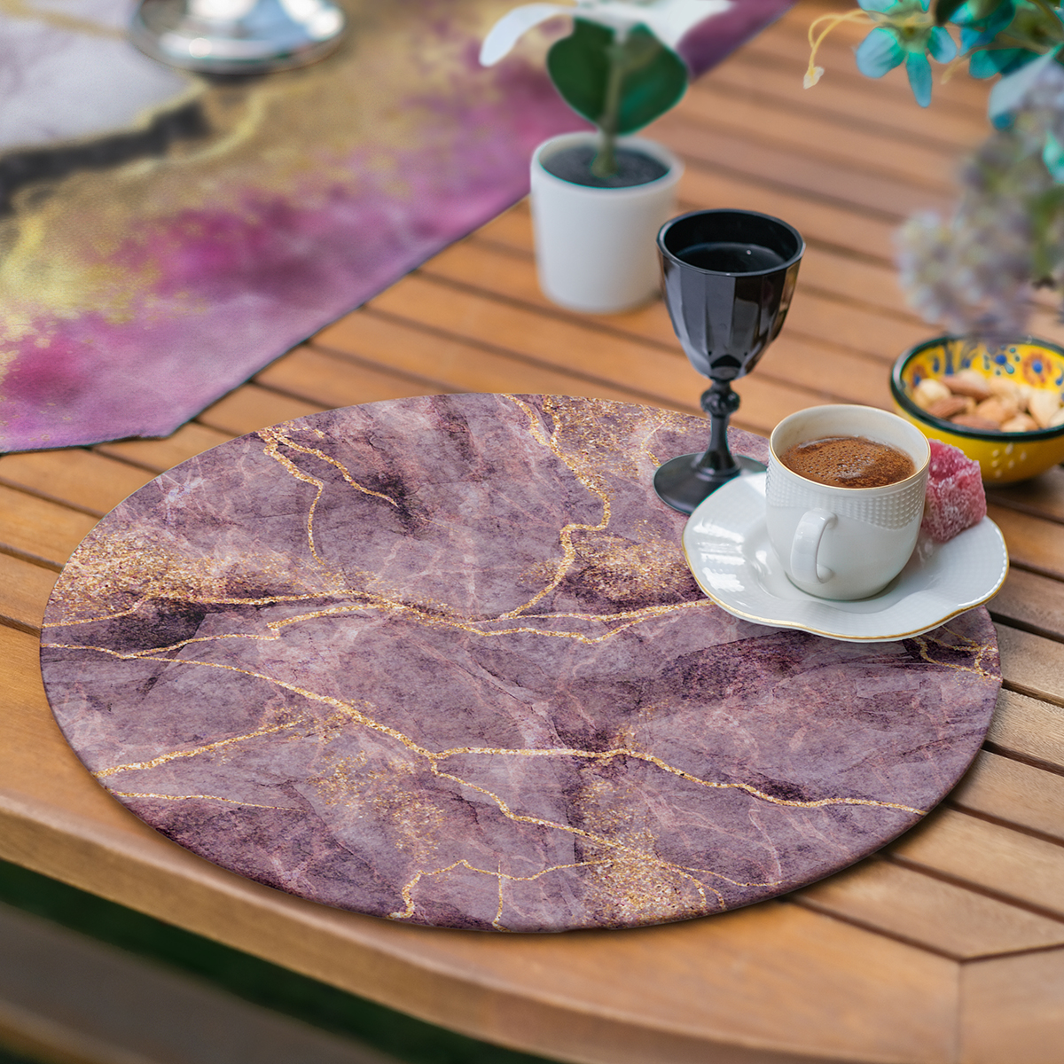 6+1’li Mor Konseptli Mermer Tassarımlı Supla Runner Seti