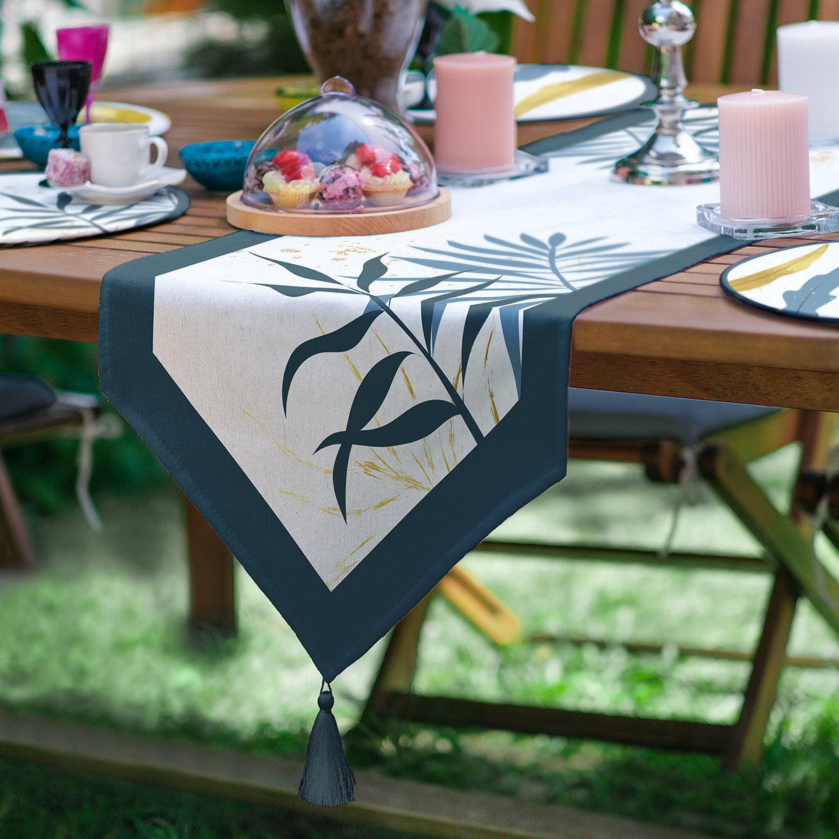 6+1'li Özel Tasarım Yaprak Tasarımlı Supla Runner Seti Realhomes