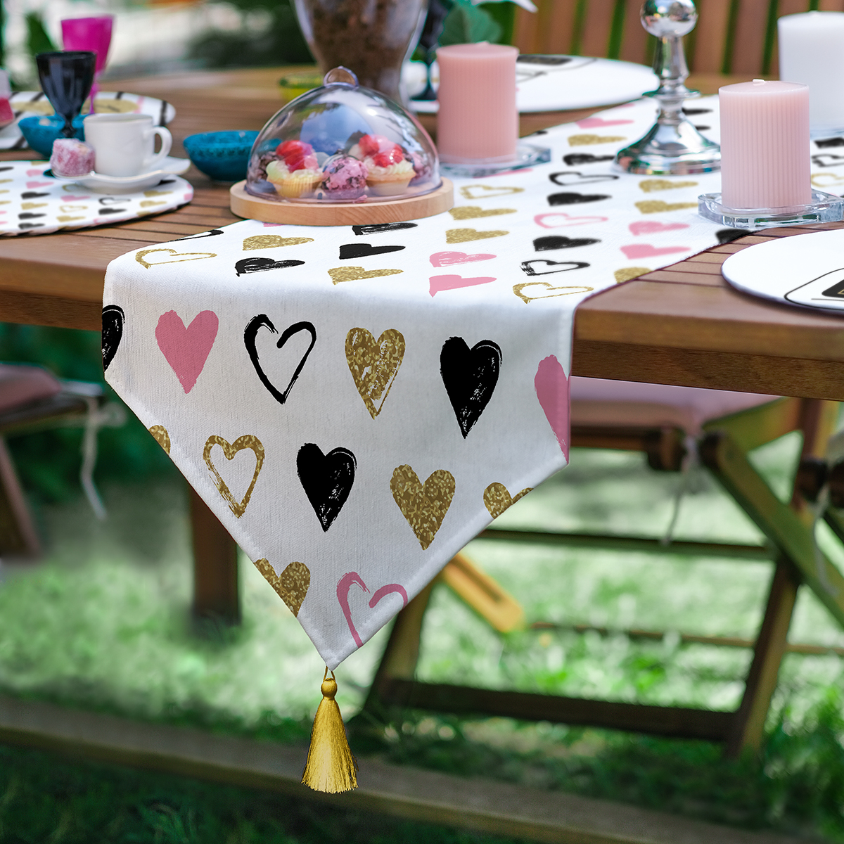 6+1'li Renkli Gold Detaylı Kalp Tasarımlı Sevgililer Günü Temalı Supla Runner Seti Realhomes