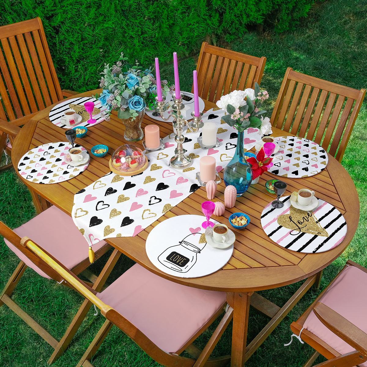 6+1’li Renkli Gold Detaylı Kalp Tasarımlı Sevgililer Günü Temalı Supla Runner Seti