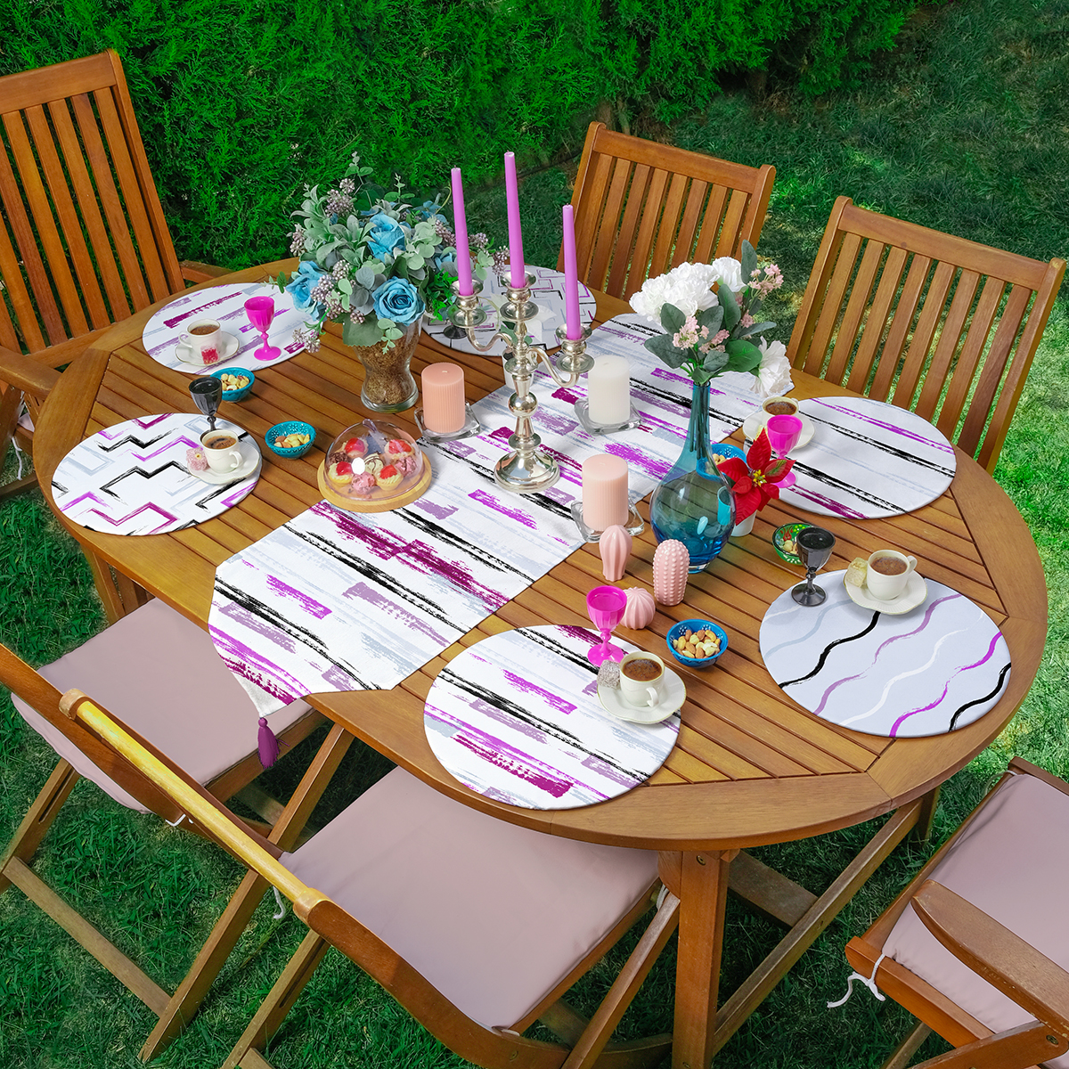 Ürün Ölçüleri: Suplalar: 34 x 34 cm (Yuvarlak) – Runner: 45 x 140 cm