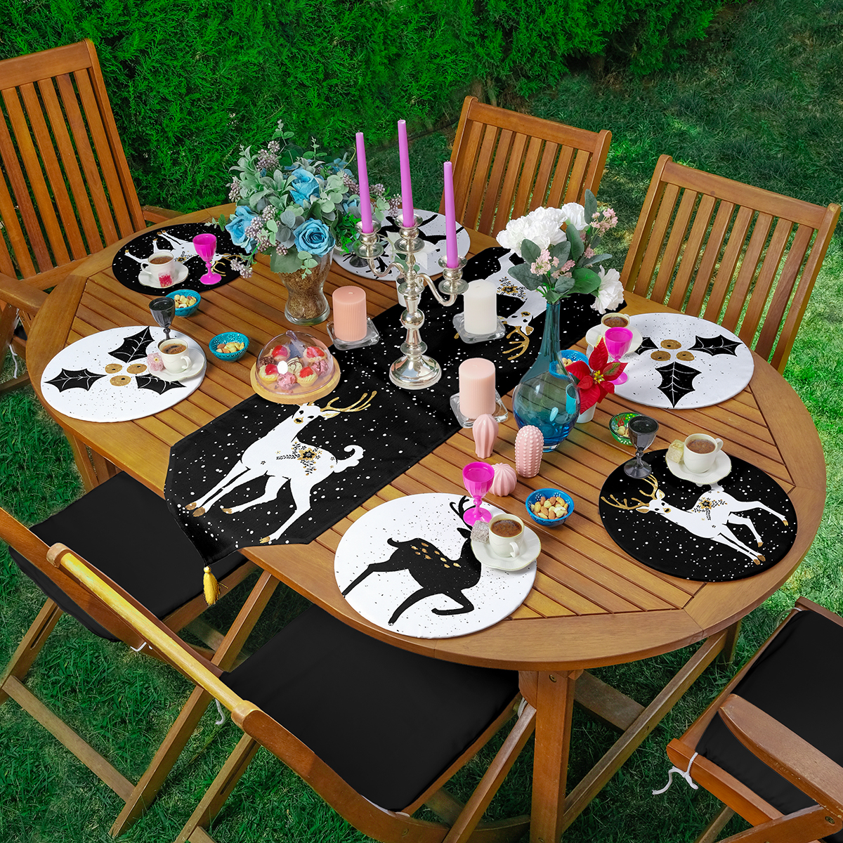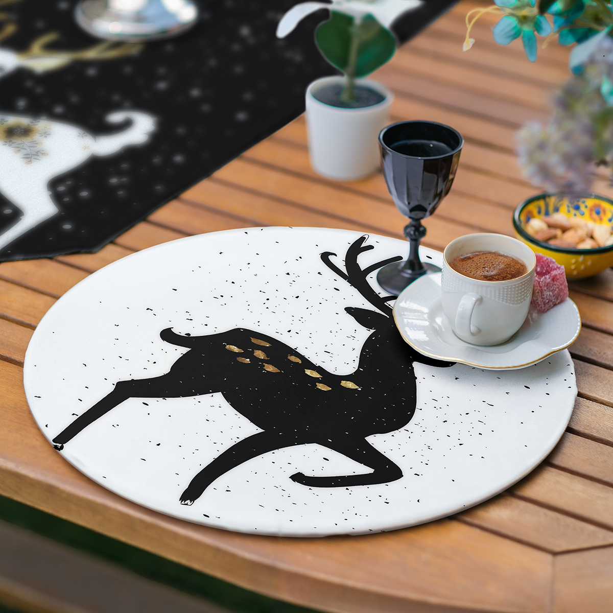 6+1’li Siyah Beyaz Gold Detaylı Yılbaşı Temalı Supla Runner Seti